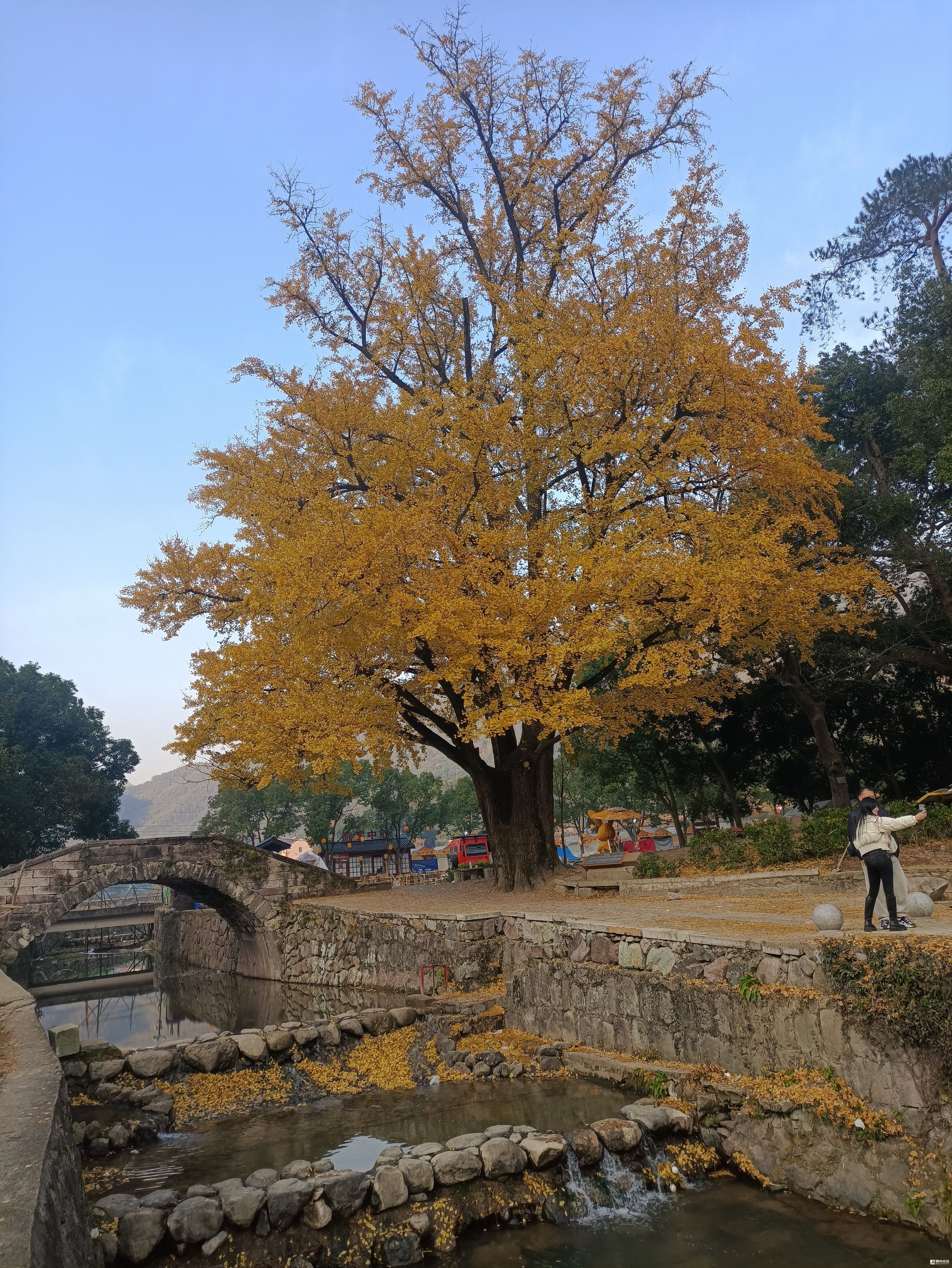 千年银杏立桥边,