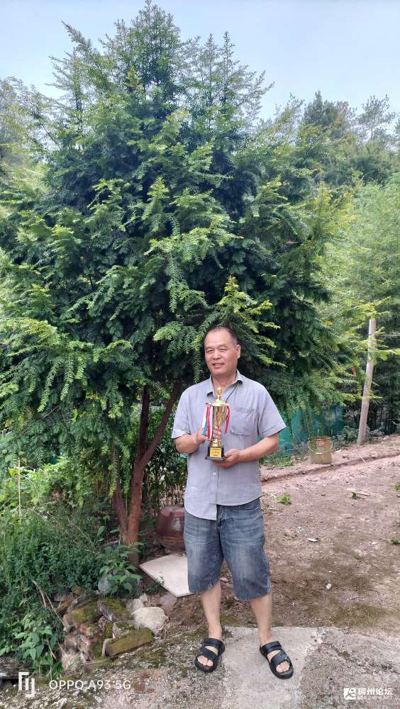 最后,我邀请陈春福同志,到他家旁边的一棵红豆杉下拍照留念:
