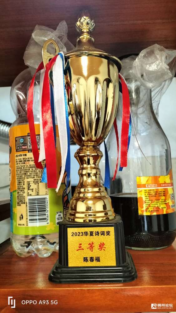 直到陈春福的闺女陈英姿远嫁四川的大喜日子里,路遇当事人陈春福同志,热情的拉住陈春福的手,一番嘘寒问暖之后,直奔主题地问道:帅哥,听说你荣获了全国华夏诗词大奖赛的三等奖?这件事是真的吗?帅哥一脸平静的说:是真的。有奖状,获奖金杯可以作证。确定消息的真伪之后,兴奋莫名的说:走走走,上你家去看看!