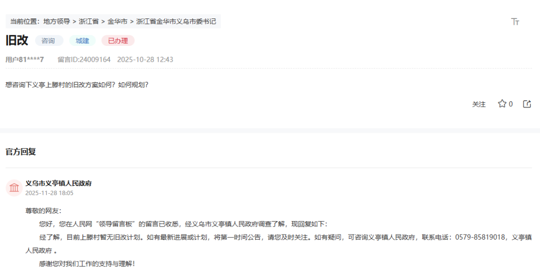 近日,有市民在网络平台咨询义乌农村旧村改造进展问题,现将有关部门答复进行整理汇总。