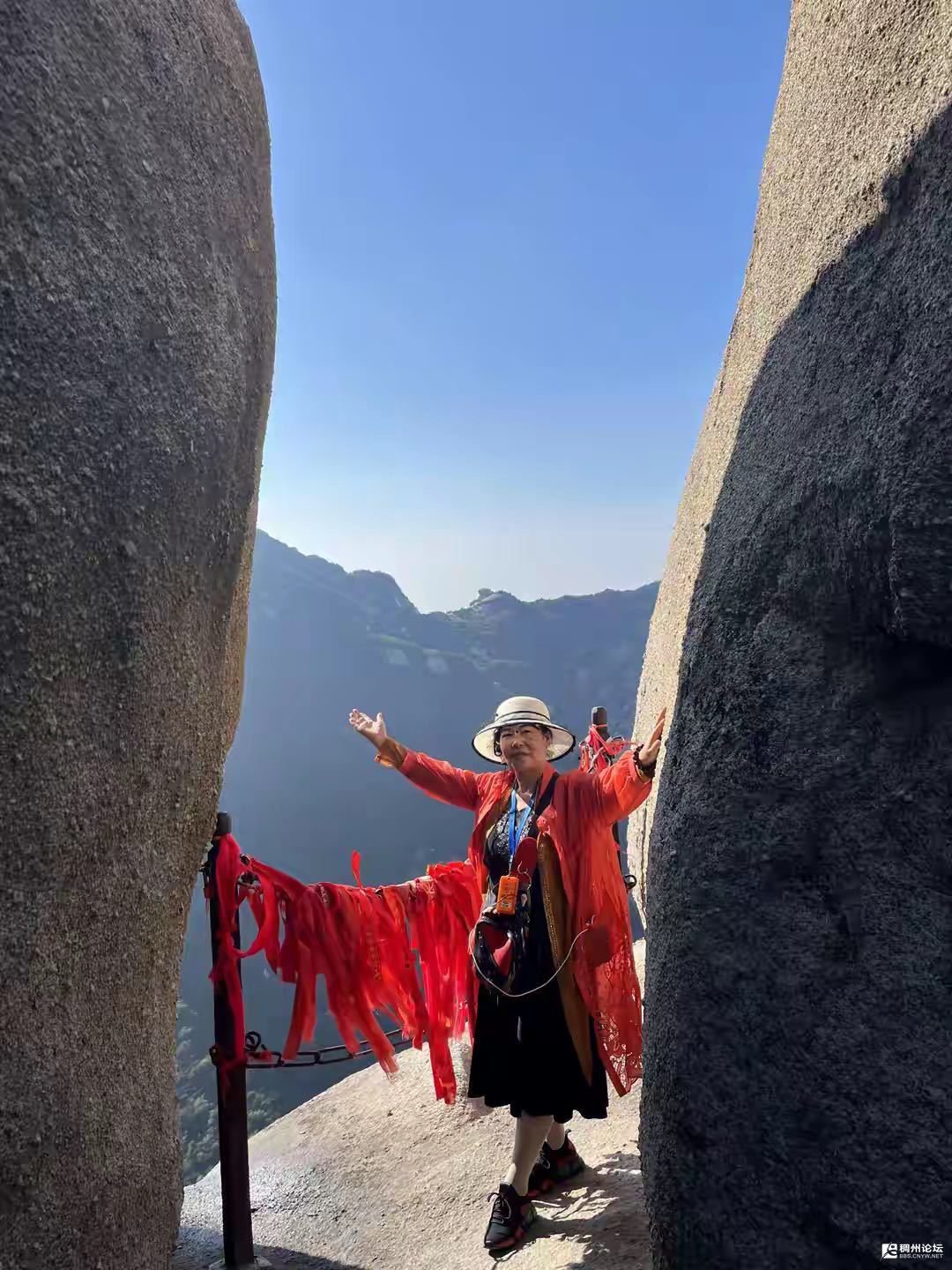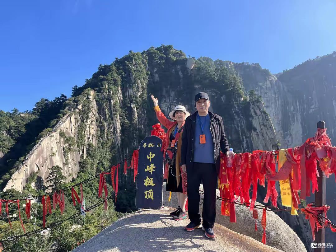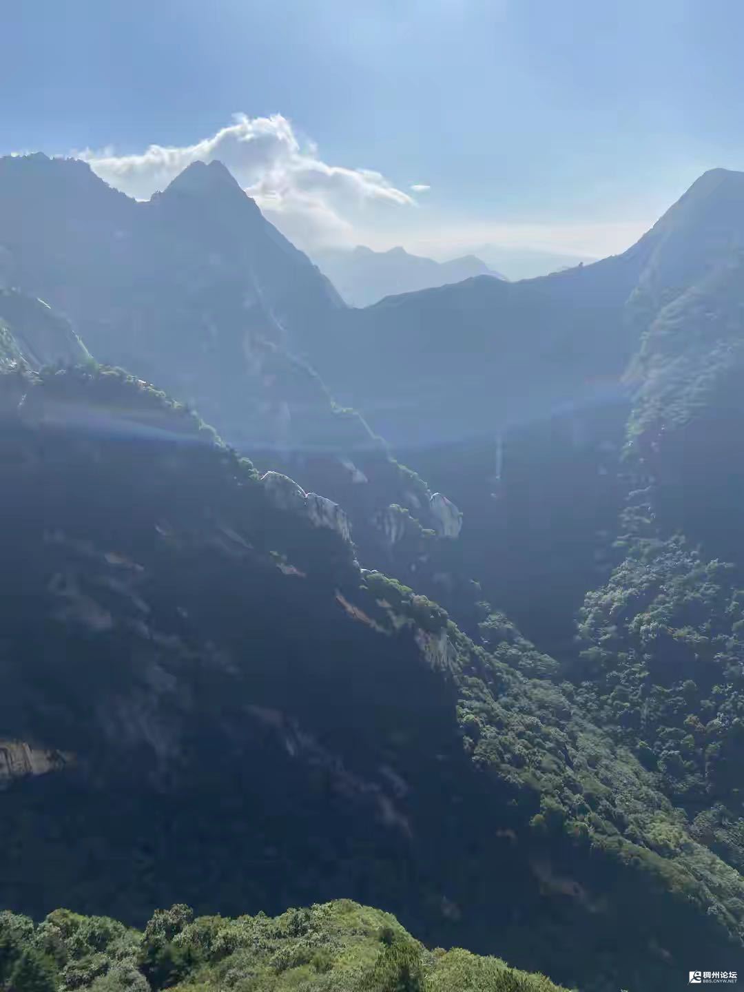 我与小蕾登上了中峰极顶,在两块高耸入云的绝壁夹弄间观赏美景,脚下是万丈深渊,对面是风景秀丽的群山风光,远处是沃野千里的锦绣河山,灿烂辉煌。我俩豪情满怀,志趣相投,让美好风光变得更加美好! (完)