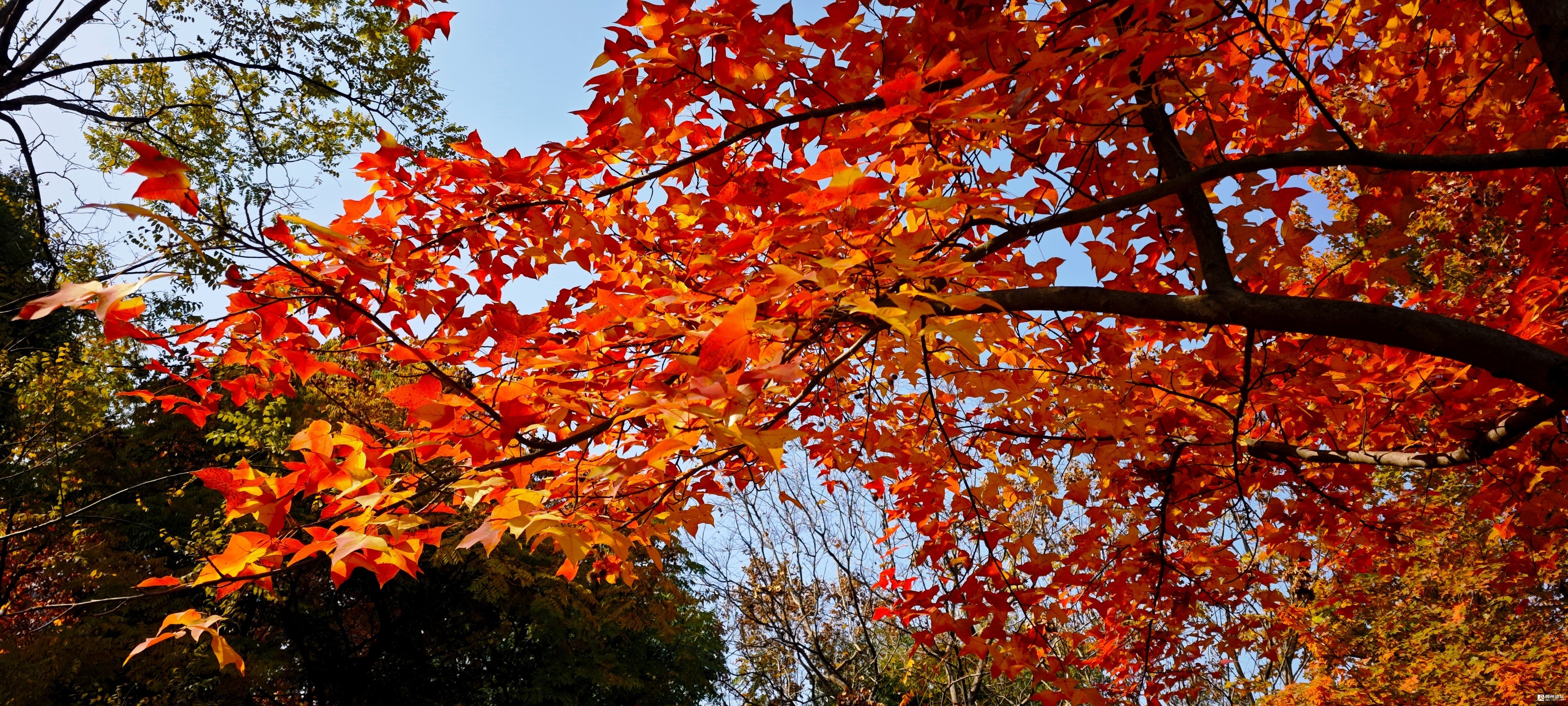 有些大人,就带着小孩,沉浸在这缤纷多彩的自然美景中。一位摄影爱好者,手持自拍杆,时而俯仰,时而前后移动,时而撒弄些树叶,正在短视频平台为粉丝们作拍摄示范。