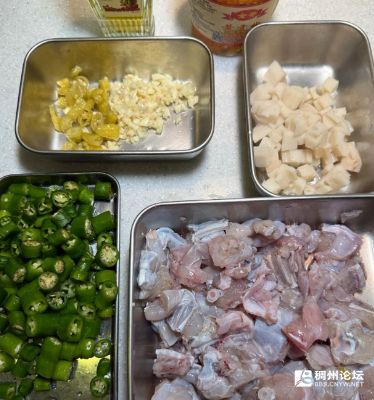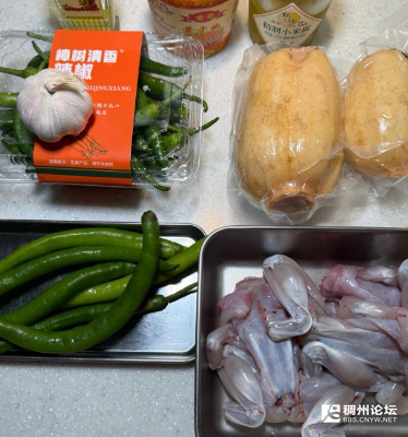 天冷了就容易饿,饿了就嘴馋,为了控制一下体重就选择相对低热量的食材,比如牛蛙,正好看到这个做法,就试试,原料:牛蛙,二荆条,野山椒,黄贡椒,藕,大蒜,花椒油。