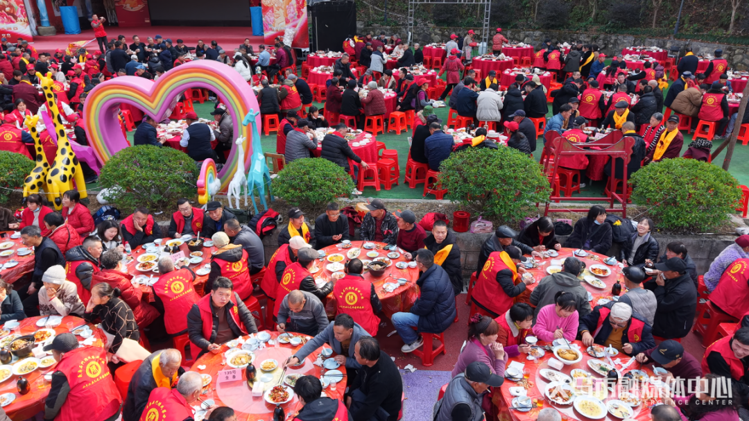 这场百桌宴共邀请了2000多名来自各地的亲友,他们有的是周边村镇的居民,有的是专程从外地赶来的宗亲。大家围坐在桌旁,一边品尝着美味佳肴,一边畅谈着生活琐事。