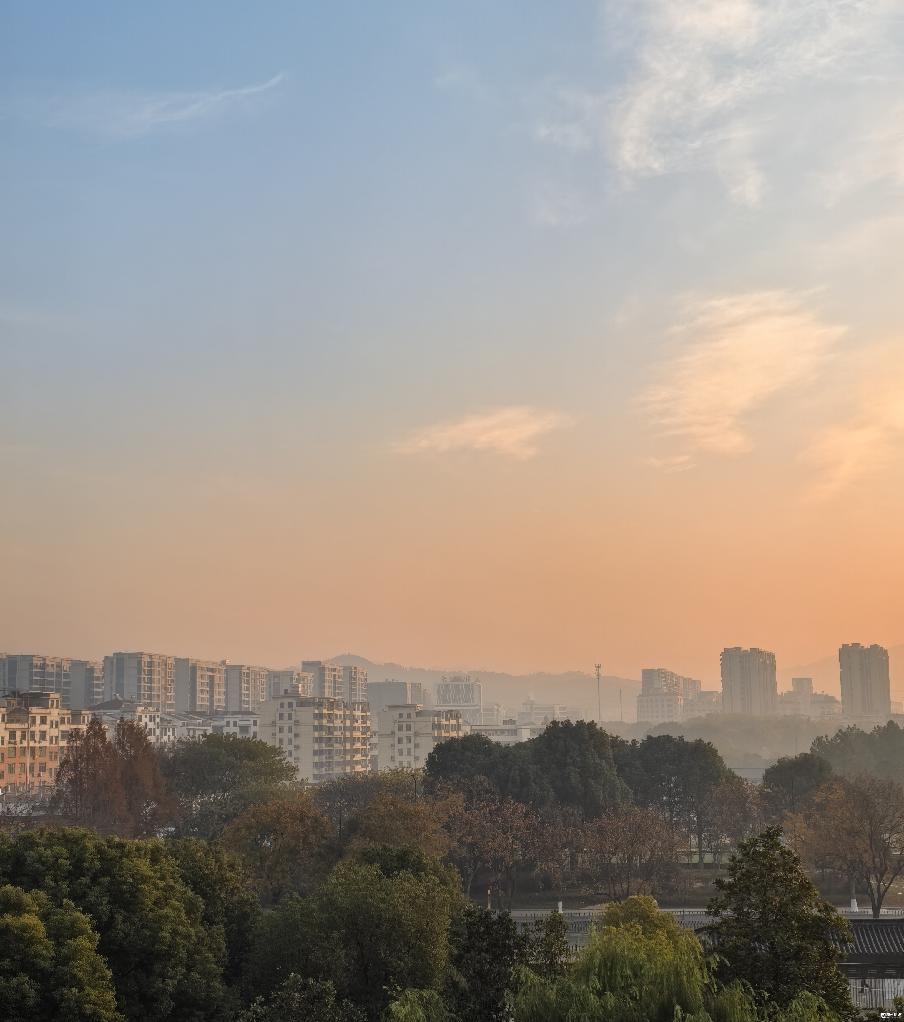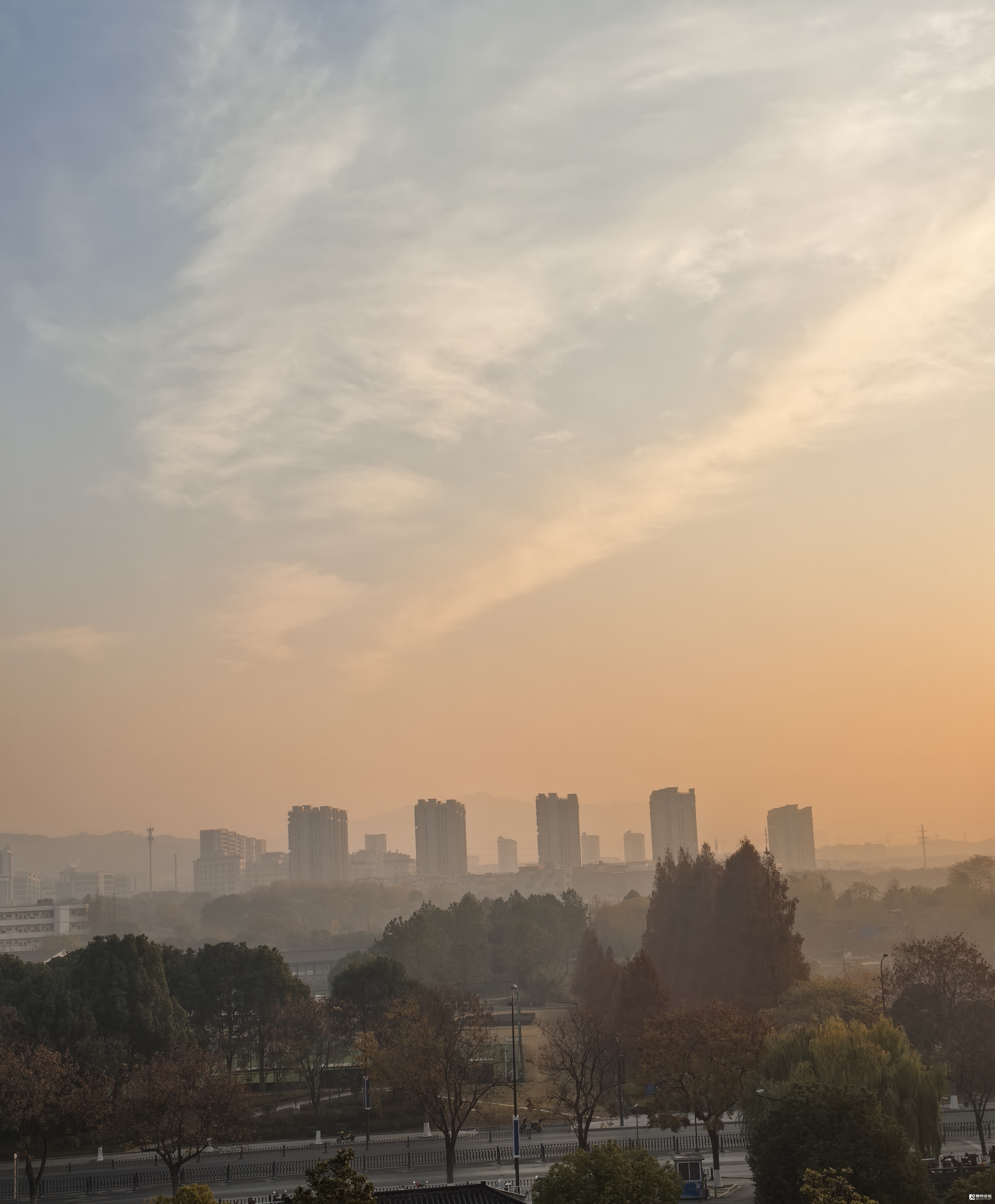 天啨,早上7时,望远处,天空中弥漫着一层迷雾,没有往日一眼望到头的清爽。