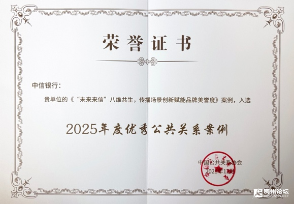 中信银行“未来来信”入选中国公关协会2025年度优秀公共关系案例