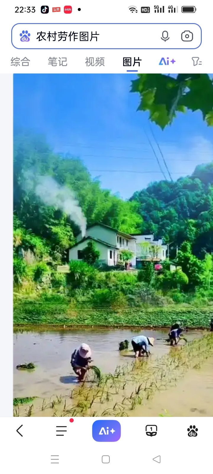 山水间,村后青山如屏,房上炊烟袅袅,如镜的水田里,农人们插秧忙,种下绿色希望……