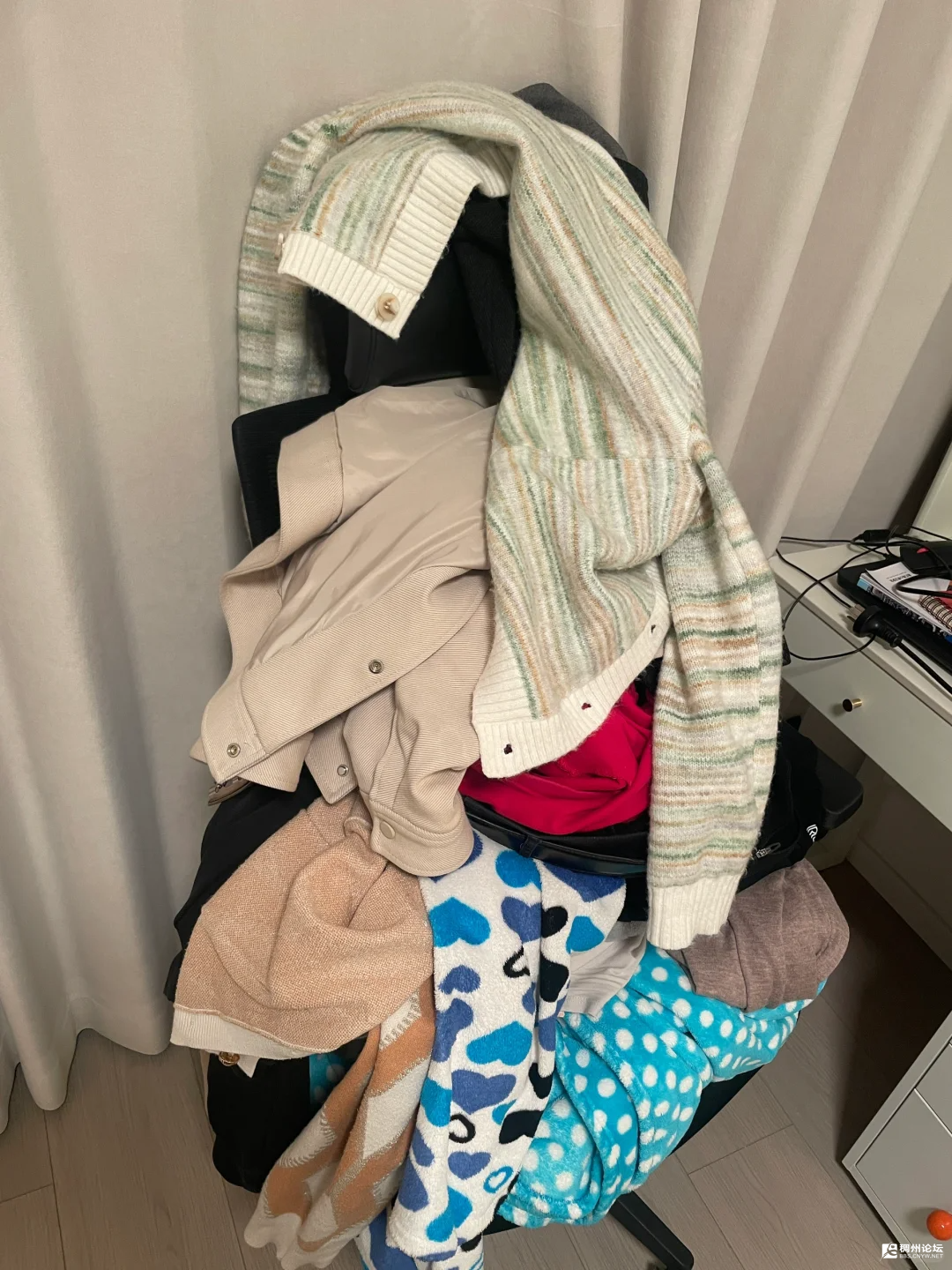 我女儿的椅子,进化了。从一把普普通通的学习椅,硬生生被她堆成了一座 “珠穆朗玛峰”。除了贴身的秋衣秋裤会按时换下来洗,剩下的外套基本都逃不过 “穿一次就搁置” 的命运。尤其是羊毛、羊绒和羽绒服,她总说洗多了会变形损耗,一周也就穿一两次,其余时间全堆在椅子上。如今椅子已经堆不下了,这些衣服又慢慢侵占了她的床,每次推开房门,看到这乱糟糟的景象,我都忍不住头疼。