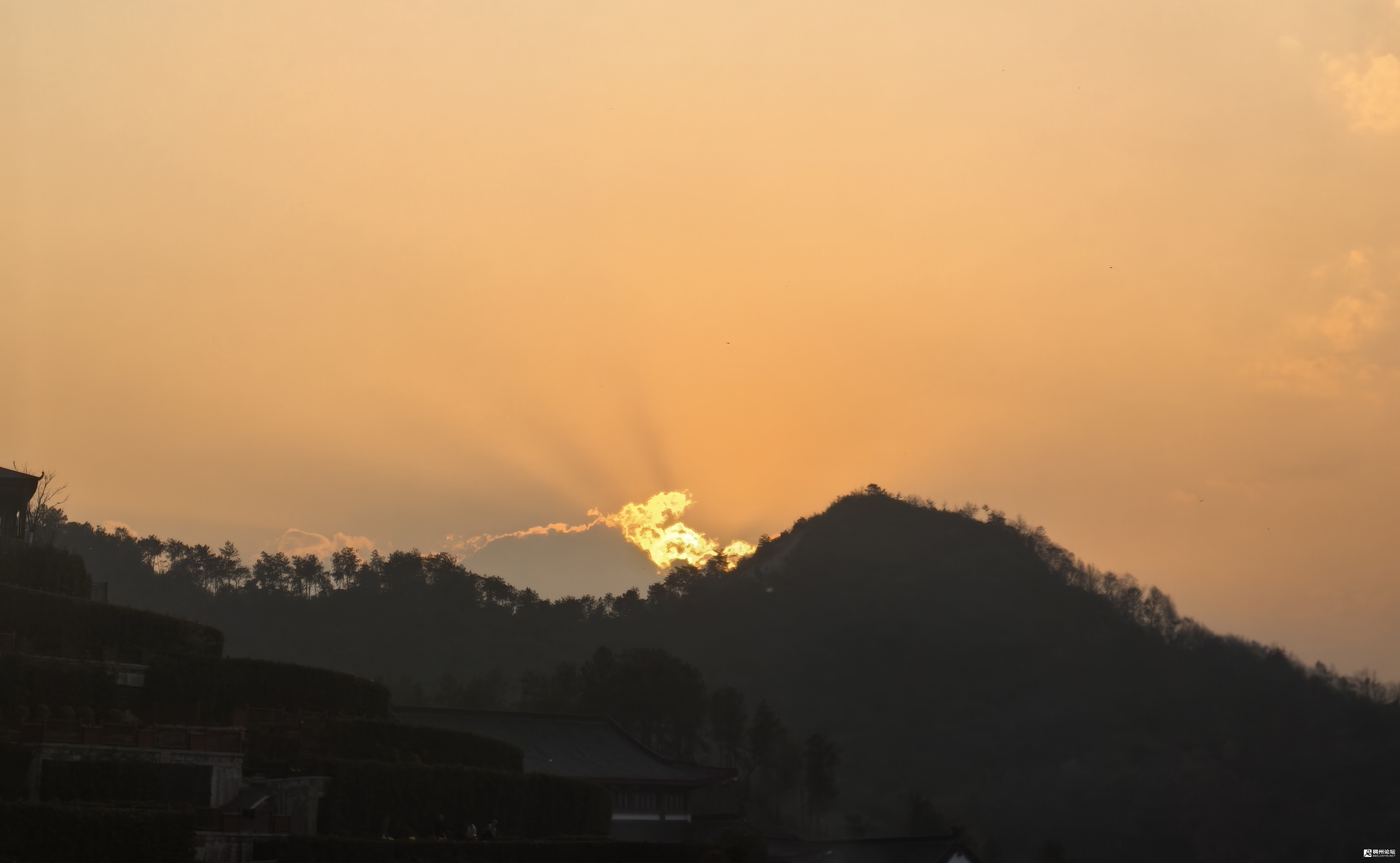山那边的夕阳是在变幻的,在云的作用下,会变化出无穷的图案,引发出人们的无限遐想。