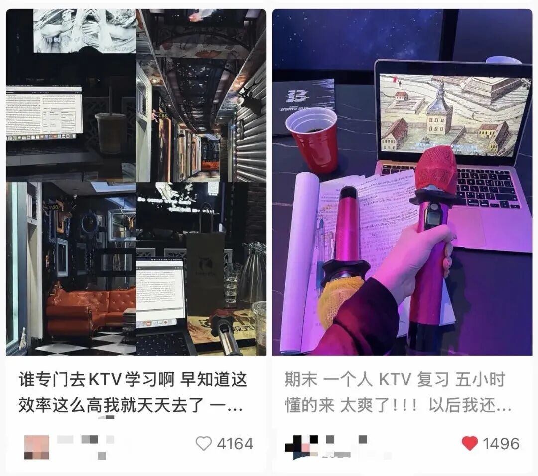 而在网上,一种新奇又小众的学习方式在年轻群体中悄然兴起:钻进白天场的KTV包厢开启酣畅淋漓的“邪修学习”模式。