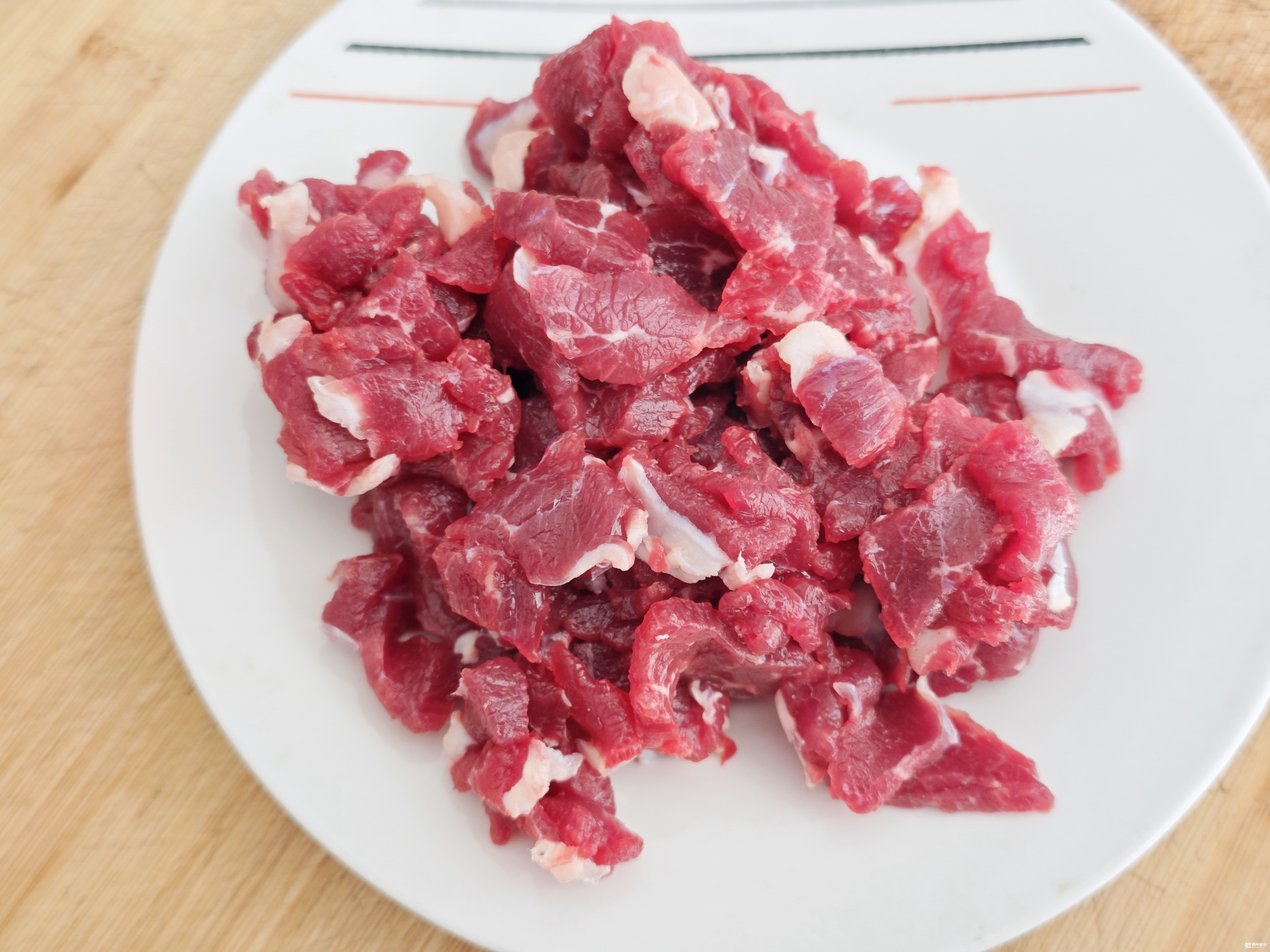 牛肉质老、筋多,必须横着肉纤维纹路切,才能把筋切短、切断,烹调后才比较嫩。