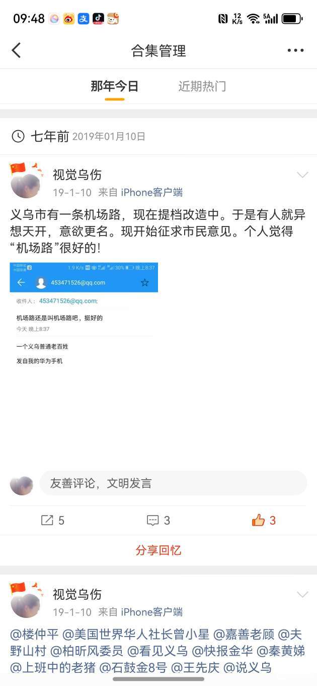 7年前的昨天,义乌机场路更名征求意见。
