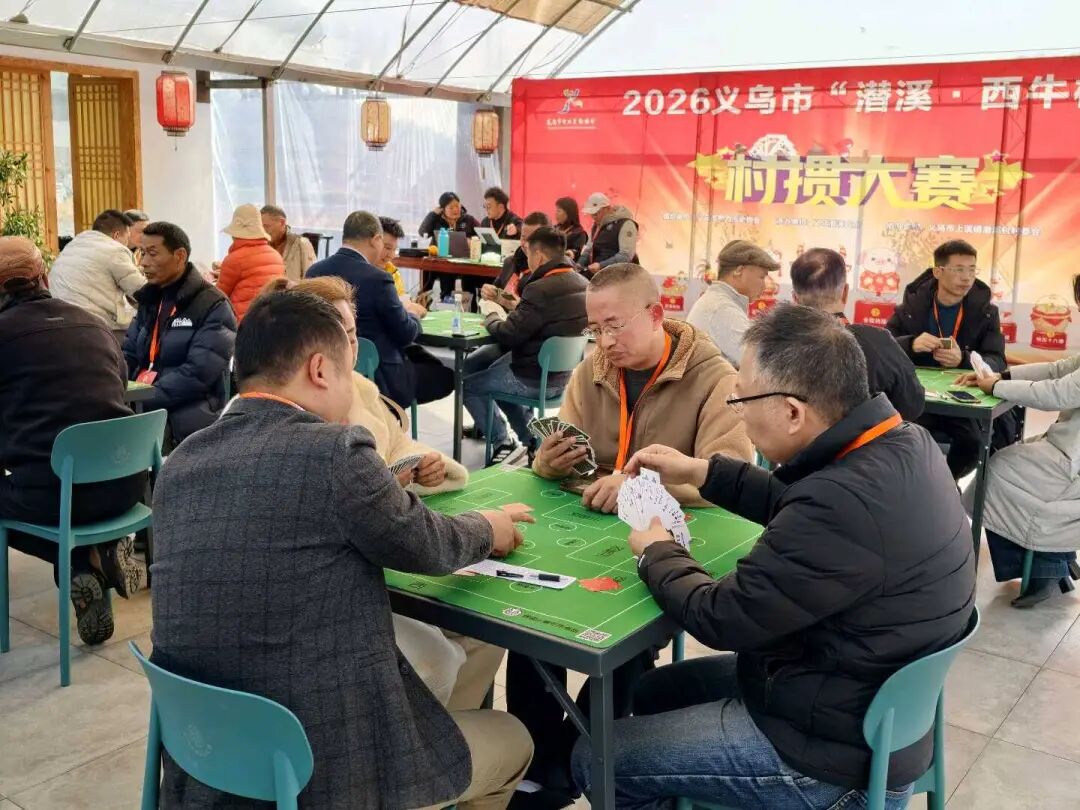 1月11日,2026年义乌市“潜溪·西牛杯”助农“村掼”大赛在上溪镇潜溪村热闹开赛,智力运动爱好者们齐聚一堂,以牌会友、切磋技艺,在智力竞技的欢乐中感受乡村振兴的蓬勃活力。