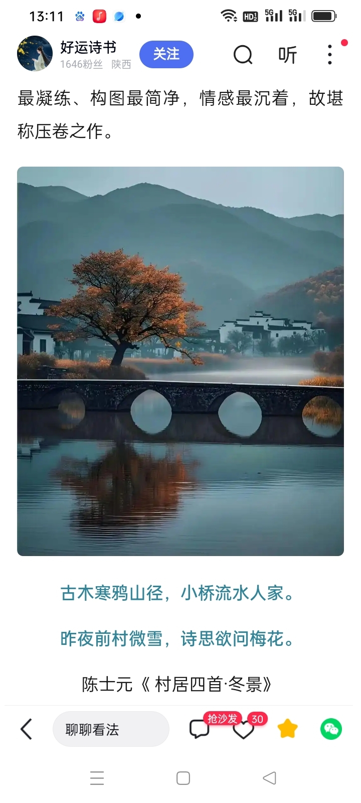 明代,陈士元,村居四首,冬景。