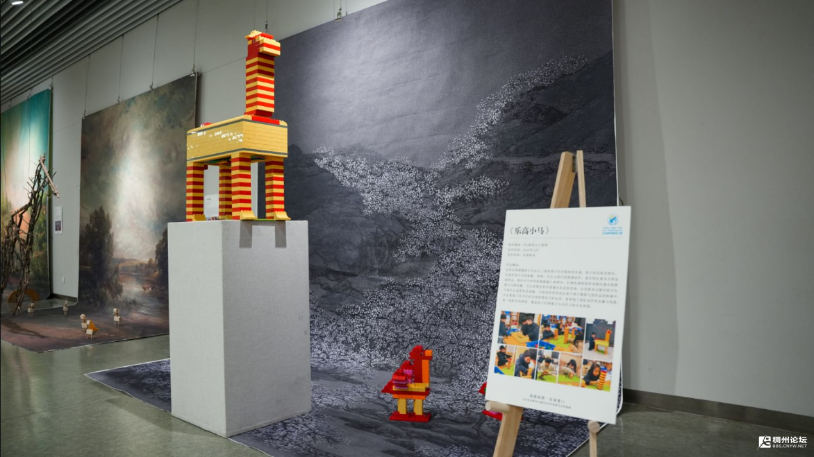 对于大班孩子而言,这场画展更是一堂关于“品质”的生动课程。我们将耐心、合作与对无限可能的信念,融入创作的每一个细节。耐心,沉淀在近两千根铁丝的弯折中,孩子们一根根数、一圈圈绕,任凭指尖酸胀也不曾放弃,当散乱的铁丝汇聚成昂首挺立的《铁丝马》,他们懂得了专注与坚持的力量;合作,升华在集体共创的过程中,无论是用“井字交叠法”共筑《建构小马》,还是分组拼搭《乐高小马》,孩子们学着倾听、协商、担当,明白了个人巧思只有融入集体蓝图,作品才能真正“站立”;对无限可能的信念,扎根在突破挑战的瞬间,一捧凌乱的树枝如何变成站立的骏马?从挑选树枝、构思形态到反复尝试固定,师生共同面对未知,在一次次失败中调整思路,当第一匹树枝小马稳稳站立时,孩子们真切相信:材料的边界可以被创意打破,心中的想象能够通过双手实现。
