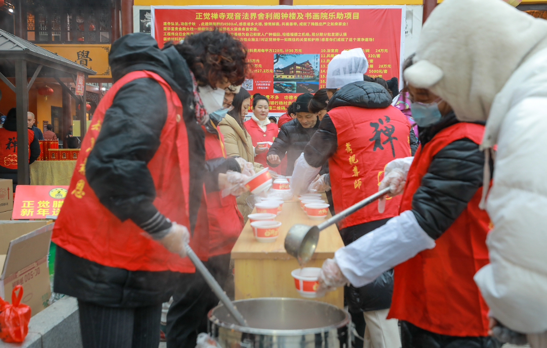 2026年1月26日 己巳年腊月初八,义乌市正觉禅寺举办了隆重的腊八节施粥活动。