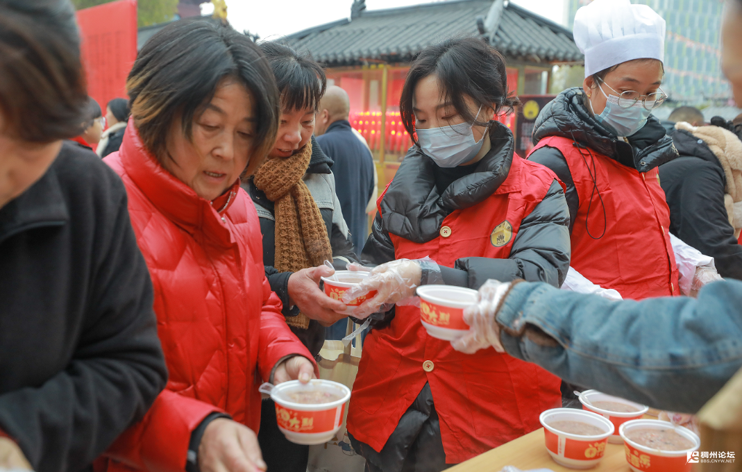 腊八节施粥活动从当天早上5点开始,天蒙蒙亮就有市民们陆陆续续来到寺院喝上了一碗满带着祝福的暖粥 。现场满是浓浓的年味,热闹非凡,寺院还邀请了书法家来到现场为大家书写祝福,将万份“福”字带回家。