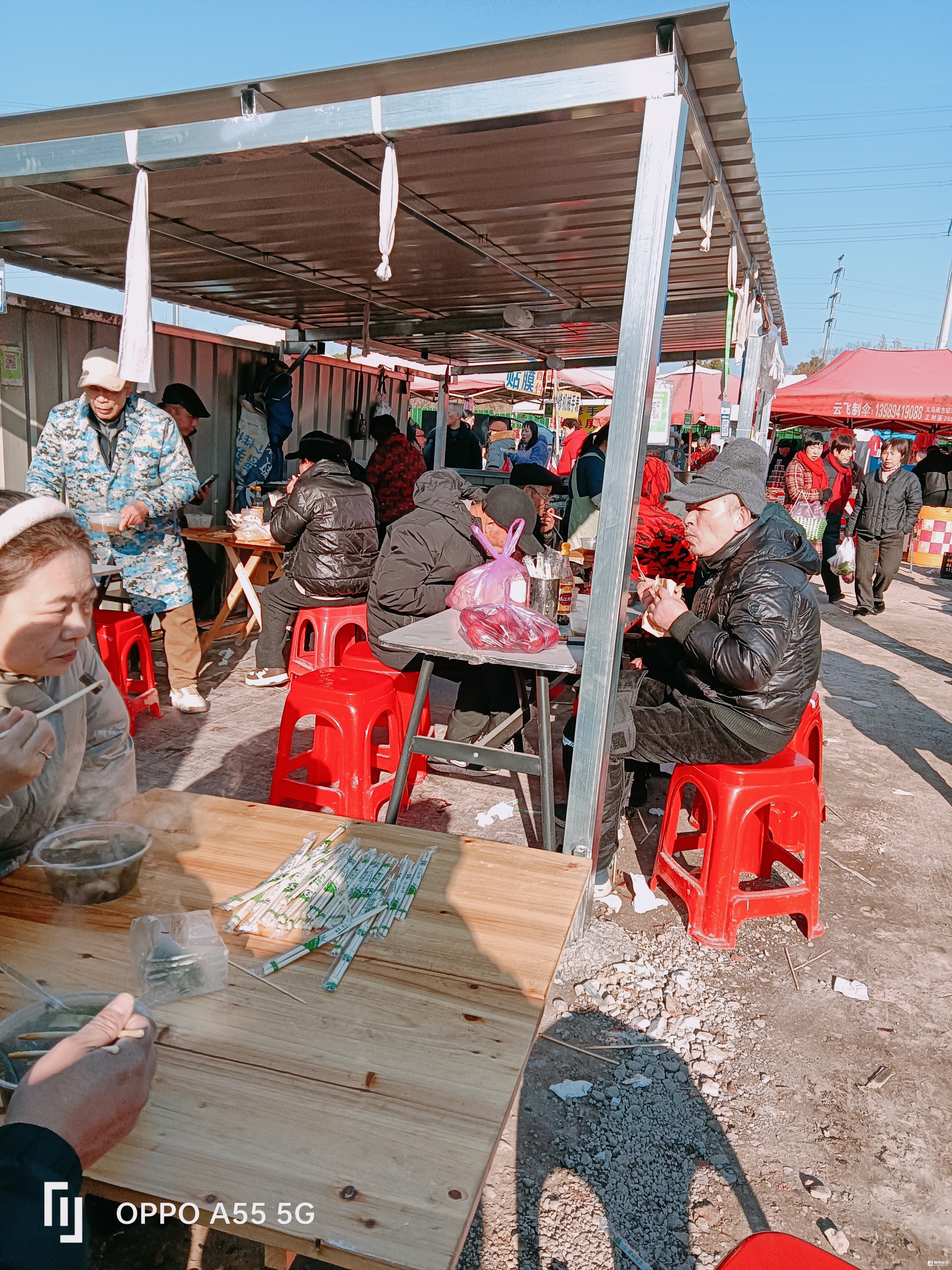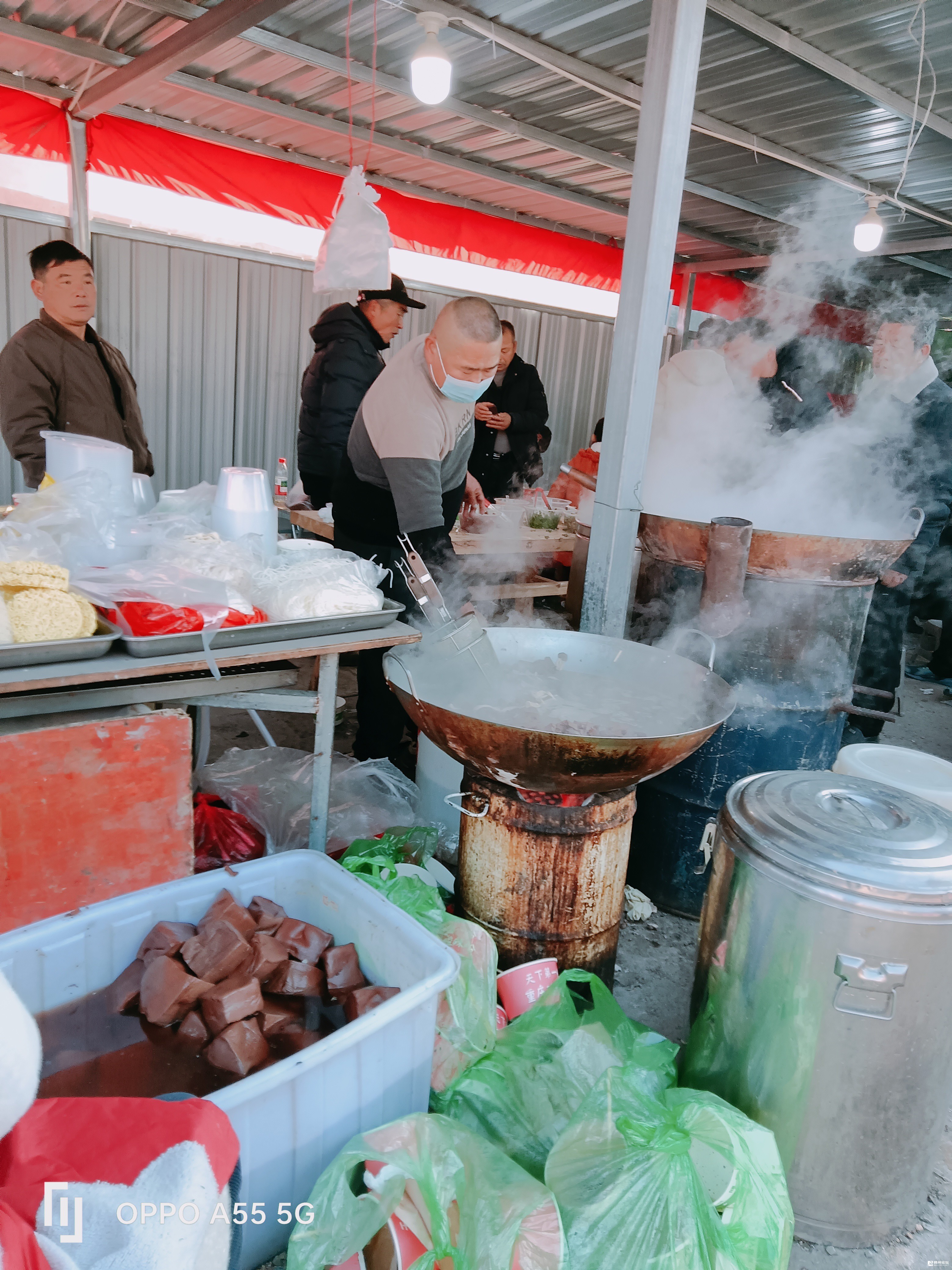 乡市集里,不仅各种各样的百货,蔬菜,肉类,水鲜,蔬菜,水果……现在又多了各色各样的小吃,大饼,油条,豆腐饼,牛杂汤,包子,馄饨,荞麦老鼠,荞麦面,麦角,……虽然是棚子架,简陋的桌椅,但食者吃得挺香。