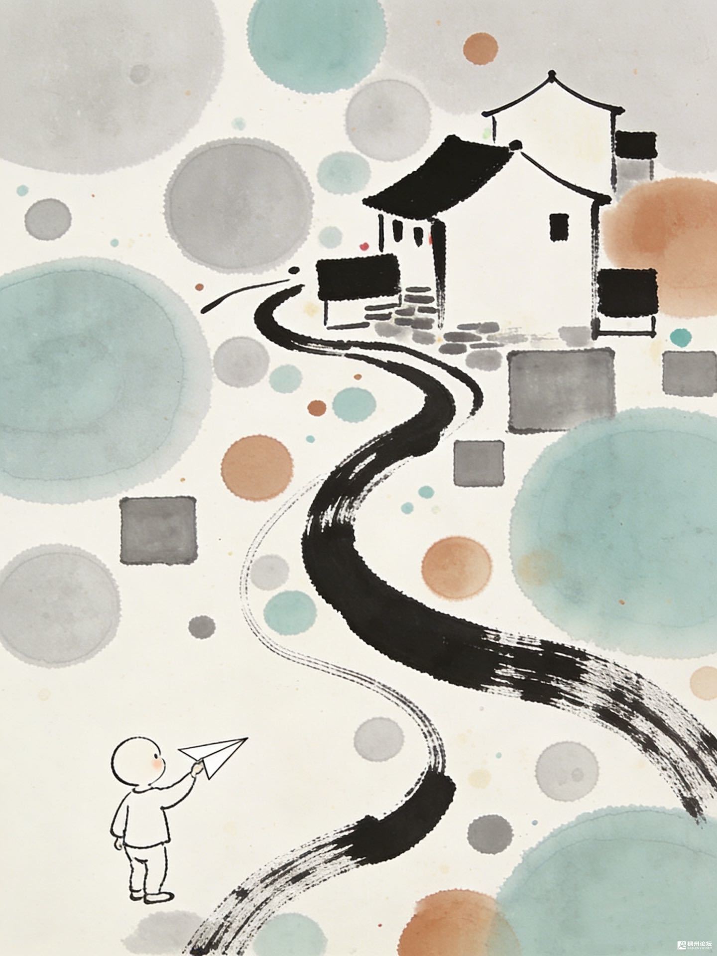 大人们总说“路要走实”,可他偏信纸飞机能驮着心思飞。墨路弯弯,是山在招手;彩点飘飘,是云在接话——纸飞机飞出去的刹那,他和山,就有了条谁也偷不走的线。