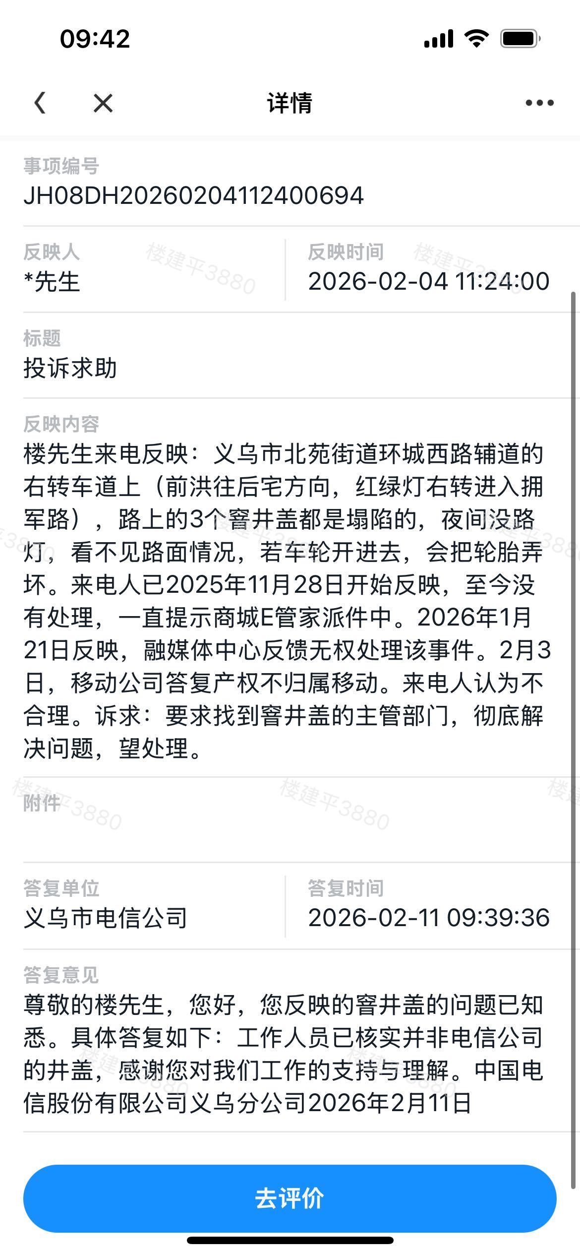 马路上窨井盖塌陷,存在安全隐患,从2025年11月28号向96150反映,两个多月过去了,期间反映了多次,一直都没有相关部门解决,融媒体中心,说不是他们的,移动公司也说不是他们的,现在电信也说不是他们的,所以到底是谁家的?