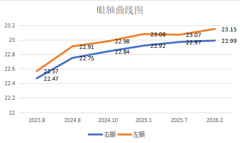 戴镜一年时间,数据显示:近视度数零增长,眼轴仅增长0.07mm。