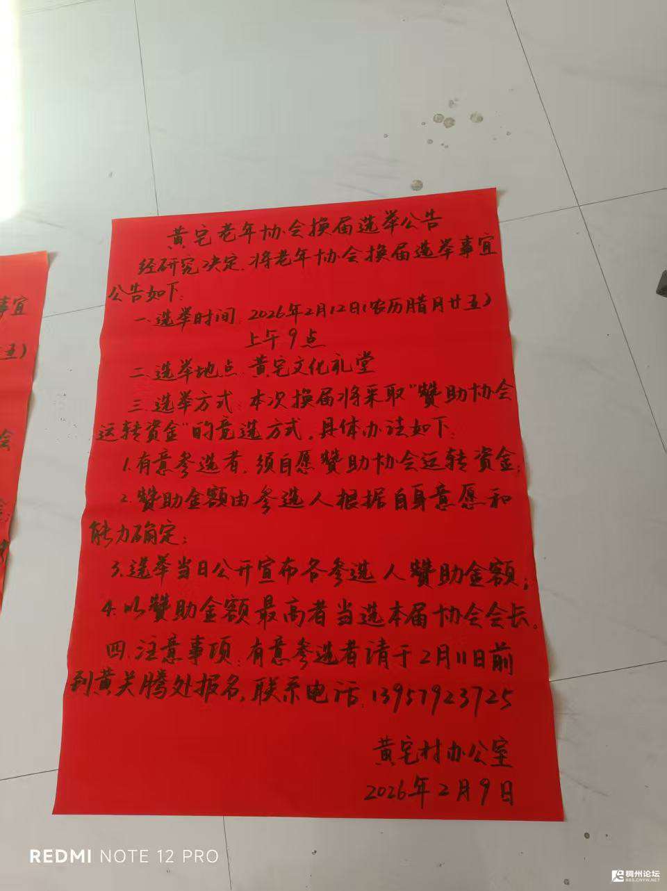 后宅街道黄宅村在2026年2月9号在本村老年协会会长换届选举中以赞助一万元人民币选会长,有人说是符合选举法的合法的,又有人说以赞助决定是金钱换取职位是贿选,公说公有理婆说婆有理,众所纷纭,持续多日,大家怎么看?