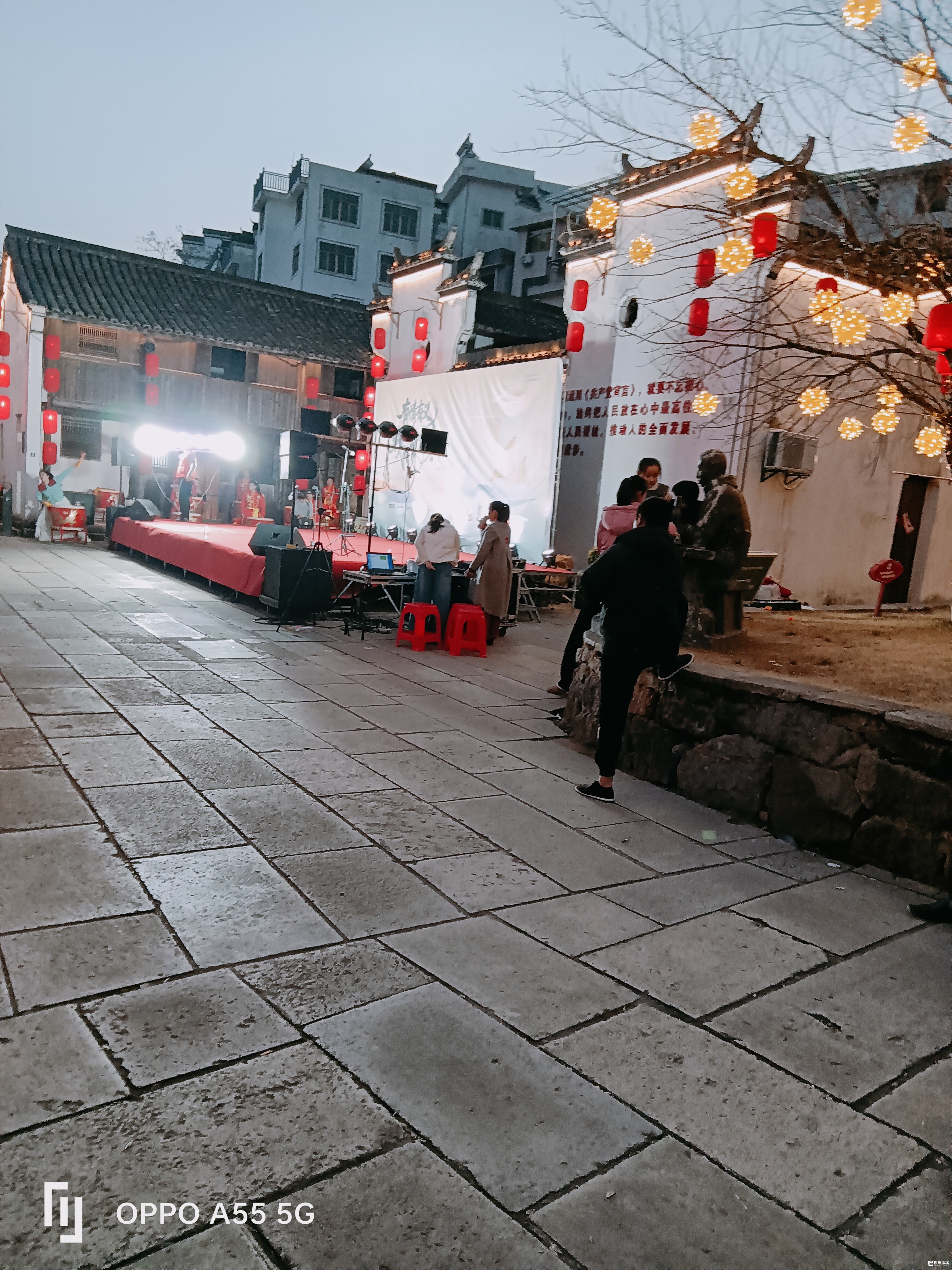 城西分水塘,是《共产党宣言》中文首译者陈望道的故乡,总台地方春晚取镜地之一。村头,村后,陈望道故居旁,彩灯高挂,火树银花,小板凳龙盘卧,舞台上的大鼓,咚!咚!咚!……传向四方,……小山村热闹极了。
