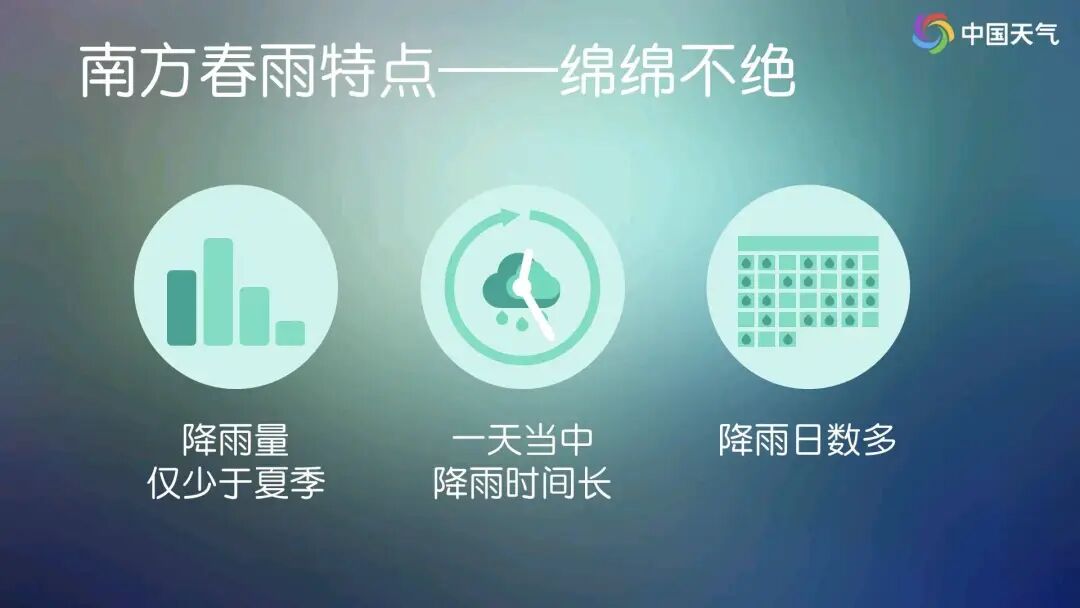 这也是3月江南的典型特点。进入3月,来自海洋上的暖湿气流开始强盛起来,与此同时,盘踞了一个冬天的冷空气已是强弩之末,冷暖空气数次“较量”之后,给我国多地带来频繁降水天气。常年3月至4月,江南、华南中北部、贵州等地降水频繁,部分地区降水日数为全年最多,主打“细水长流”:呈现一天当中降雨持续时间长、雨日多、强降雨相对不多等特点。