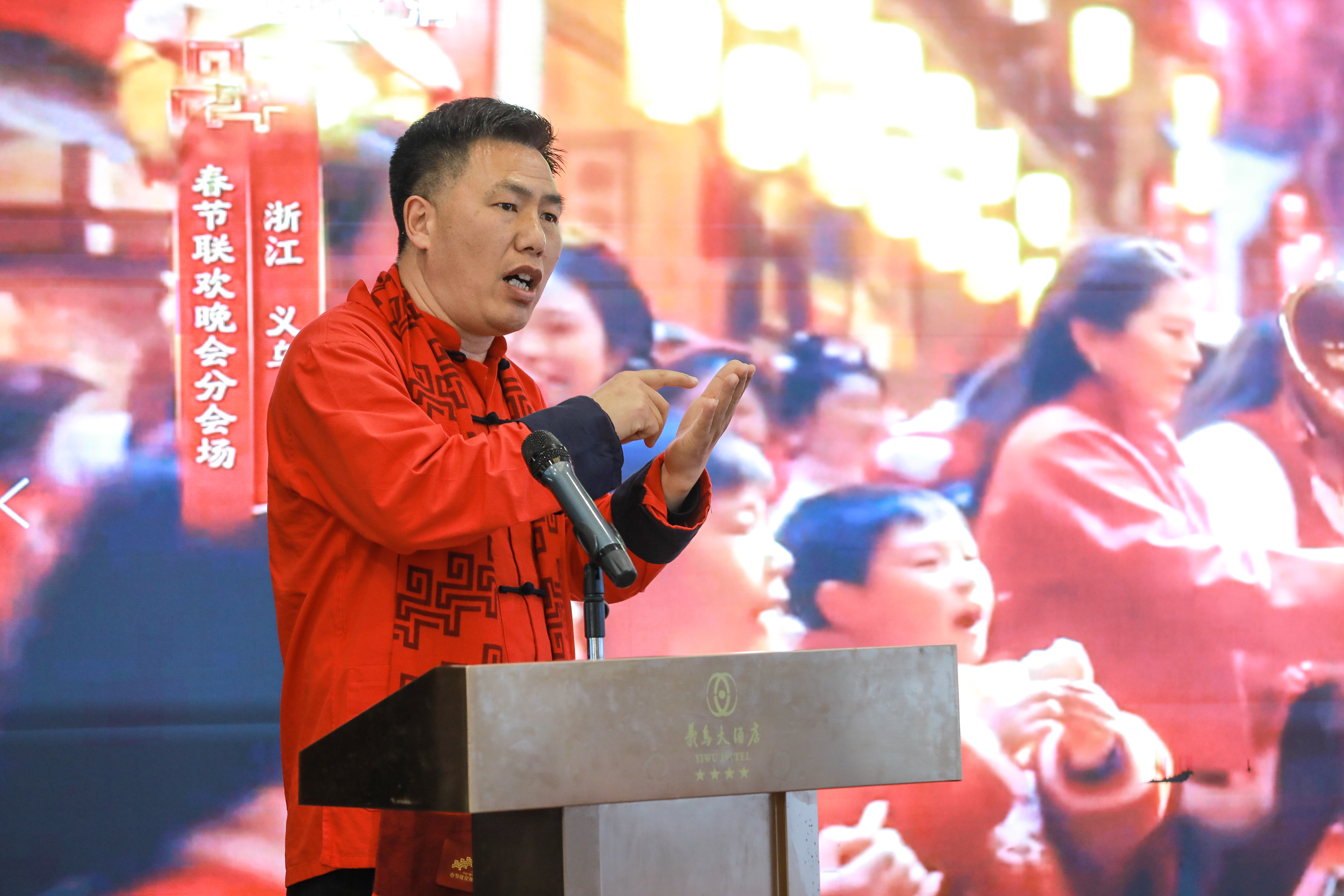 这场故事会由金华市科普作家协会、义乌市作家协会、义乌热线联合主办,浙江汉宇设计有限公司、义乌围巾行业协会、义乌大酒店共同协办。现场座无虚席,过道里都站了一些闻讯赶来的人们,大家彼此寒暄,话题总绕不开刚过一个月的那个让义乌沸腾的夜晚——2026年央视春晚,义乌作为浙江第一个春晚分会场,用八分钟的精彩亮相,向全球观众献上了一道别具风味的“精神年夜饭”。