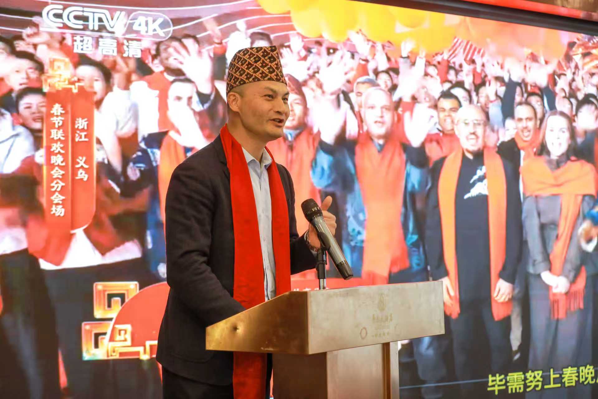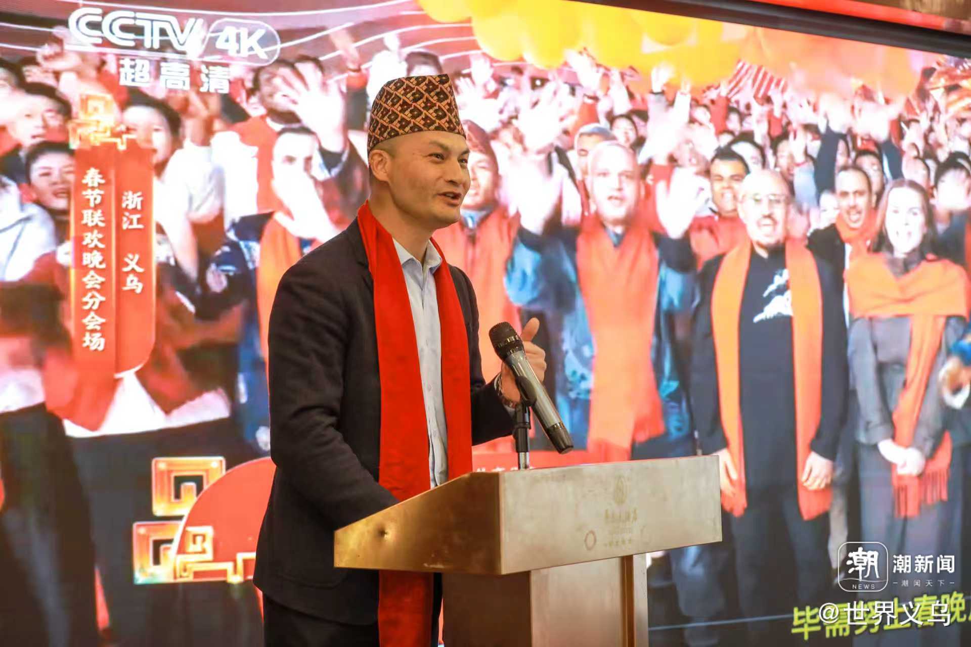 这位尼泊尔—中国工商会义乌办事处负责人、尼泊尔采购商服务中心主任,在春晚上与成龙“同台献唱”,成为当晚最具“国际范”的画面之一。