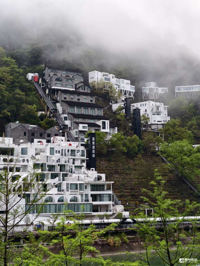 列车穿雾空中过,
