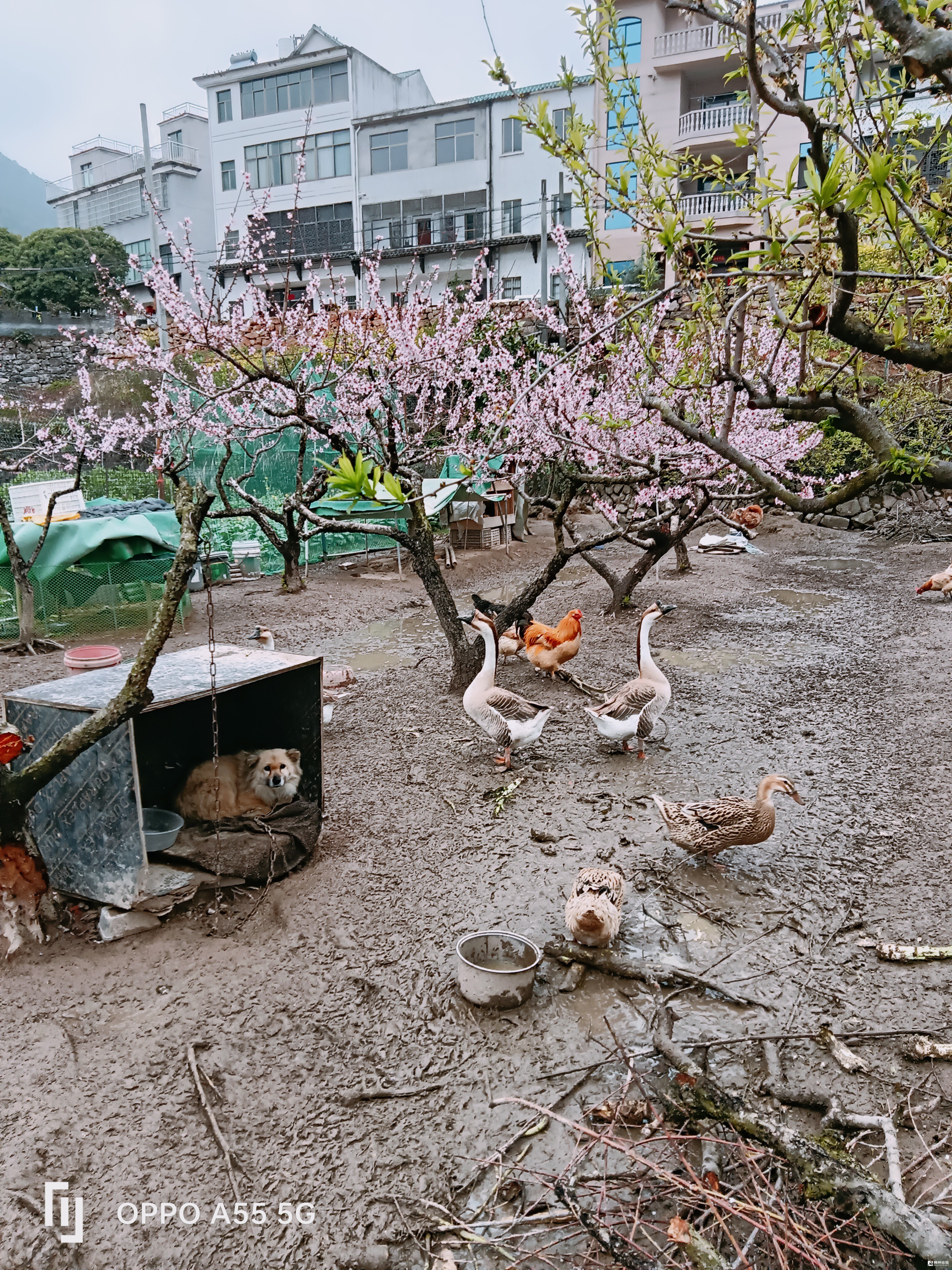 王维,雨中草色绿堪染,水上桃花红欲燃。如诗如画的桃花林,远处,声声传来鸡鸣犬吠,走近一看,灿灿桃花树下,鸡鸭鹅,小狗,生活在泥泞的树下地里,鸭,鹅不会厌弃泥泞,忠实的小狗守着这泥泞潮湿的地方……养鸡户信心十足地说,桃花树下养得鸡是土鸡,也叫桃花鸡,无伦大小,240元一只,白毛大雄鸡还舍不得卖,你说值不值……