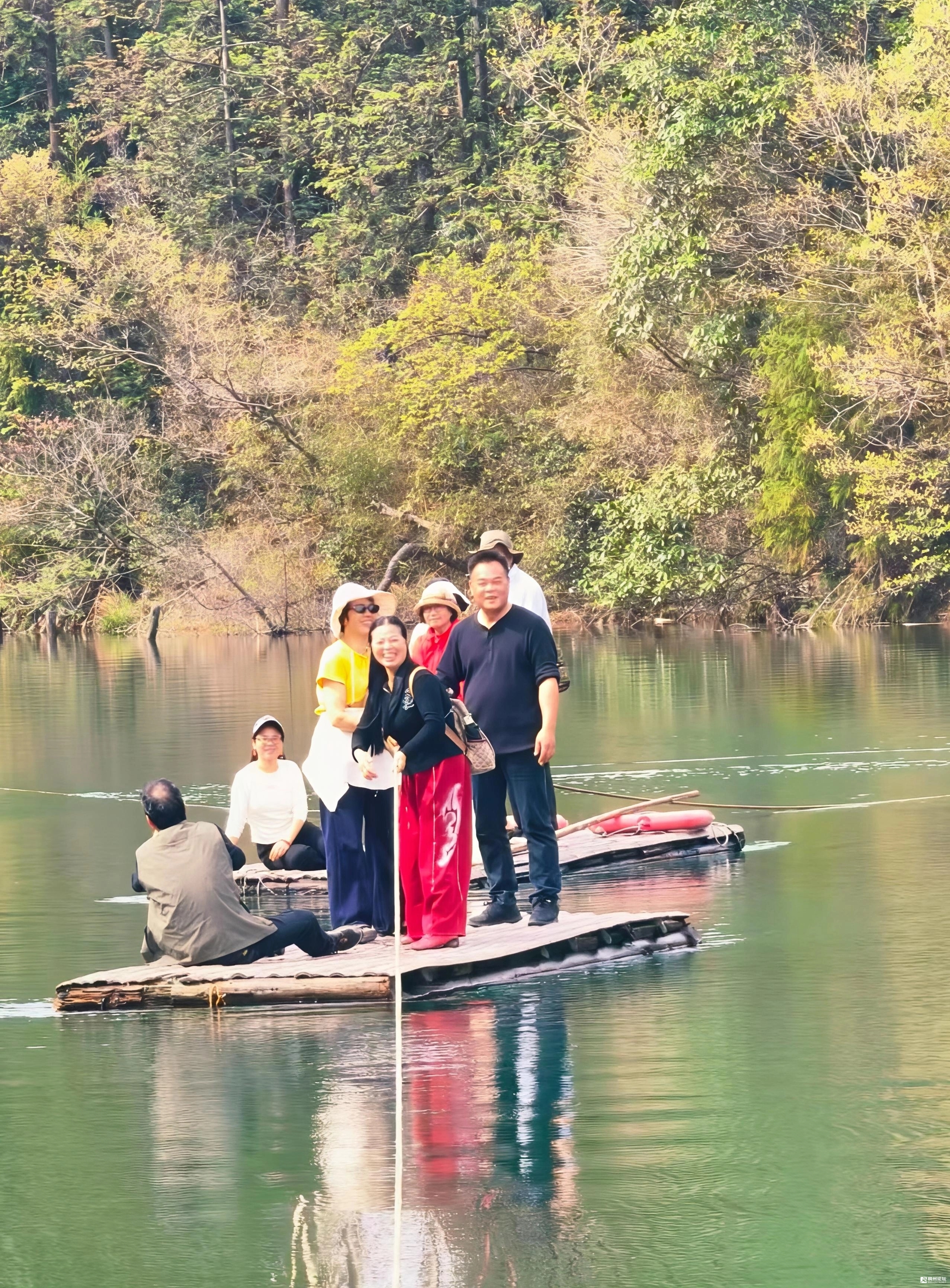 更让人惊喜的是,席间气氛特别热烈。平时几乎从不开口唱歌的王春平主席,也被这氛围感染,即兴高歌一曲。大家也都来了兴致,你一首我一首,轮番献唱,根本停不下来。唱到尽兴处,我们又跳上竹排,对着山水对起了山歌,歌声在山谷里回荡,引得周围的游客都纷纷侧目喝彩。