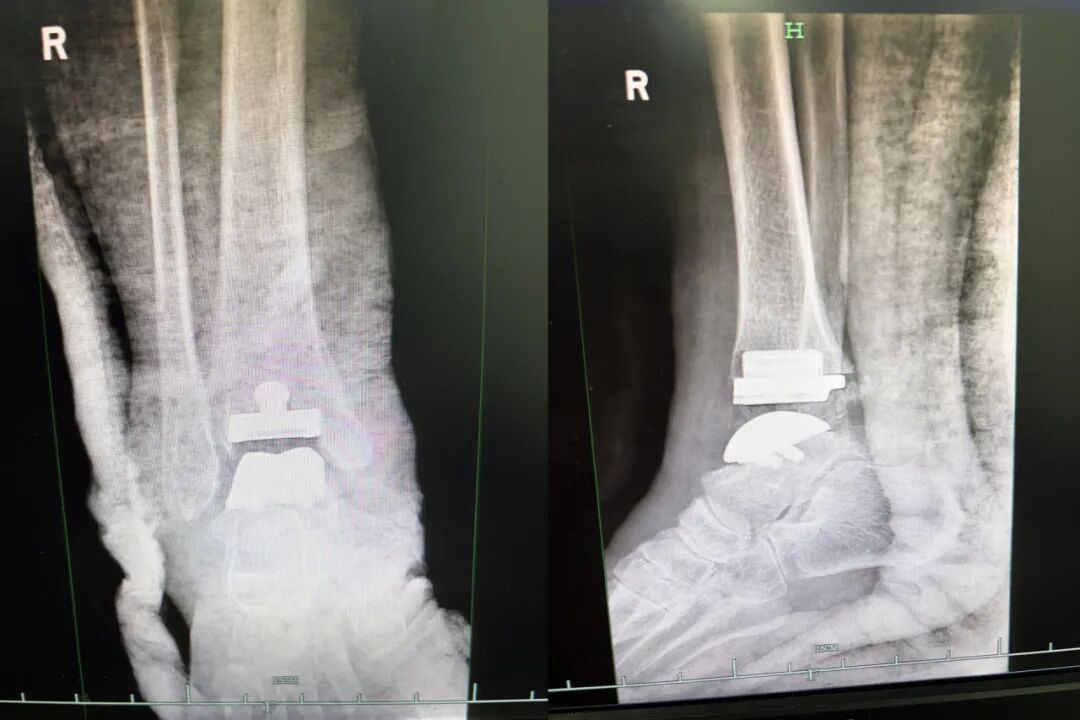 骨科副主任、副主任医师何凌峰介绍,对于终末期踝关节炎、创伤后关节炎等踝关节疾病,传统的踝关节融合手术虽然可以缓解疼痛,但以牺牲关节活动功能为代价,术后患者踝关节无法正常屈伸,步态会受到一定影响,部分患者还会出现邻近关节代偿性退变加速的问题。