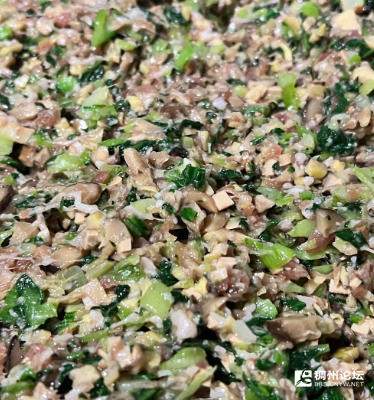 馅料:嫩笋尖、前腿肉、香菇、茶干、青菜。