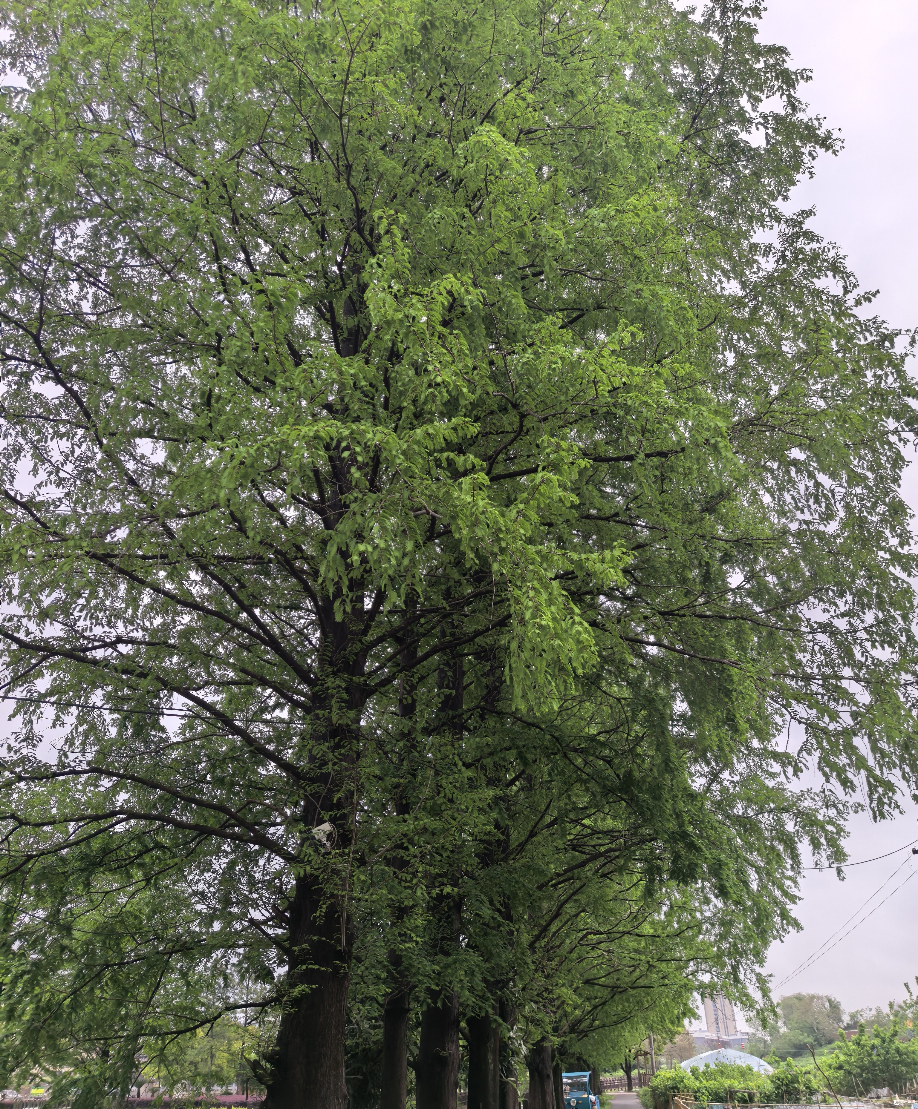 挺拔笔直的水杉返青了,越发老当益壮,气宇轩昂。