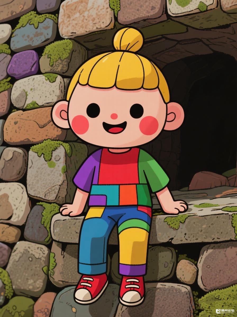 大人总爱把破洞补得“看不见”,她偏不。每块补丁都是她捡来的颜色——昨天摘的紫葡萄皮、今早看见的红屋顶、刚才摸到的绿苔藓,全被她缝进了衣裳里。石墙背后的黑窟窿?那是她藏彩虹碎片的宝盒呢。