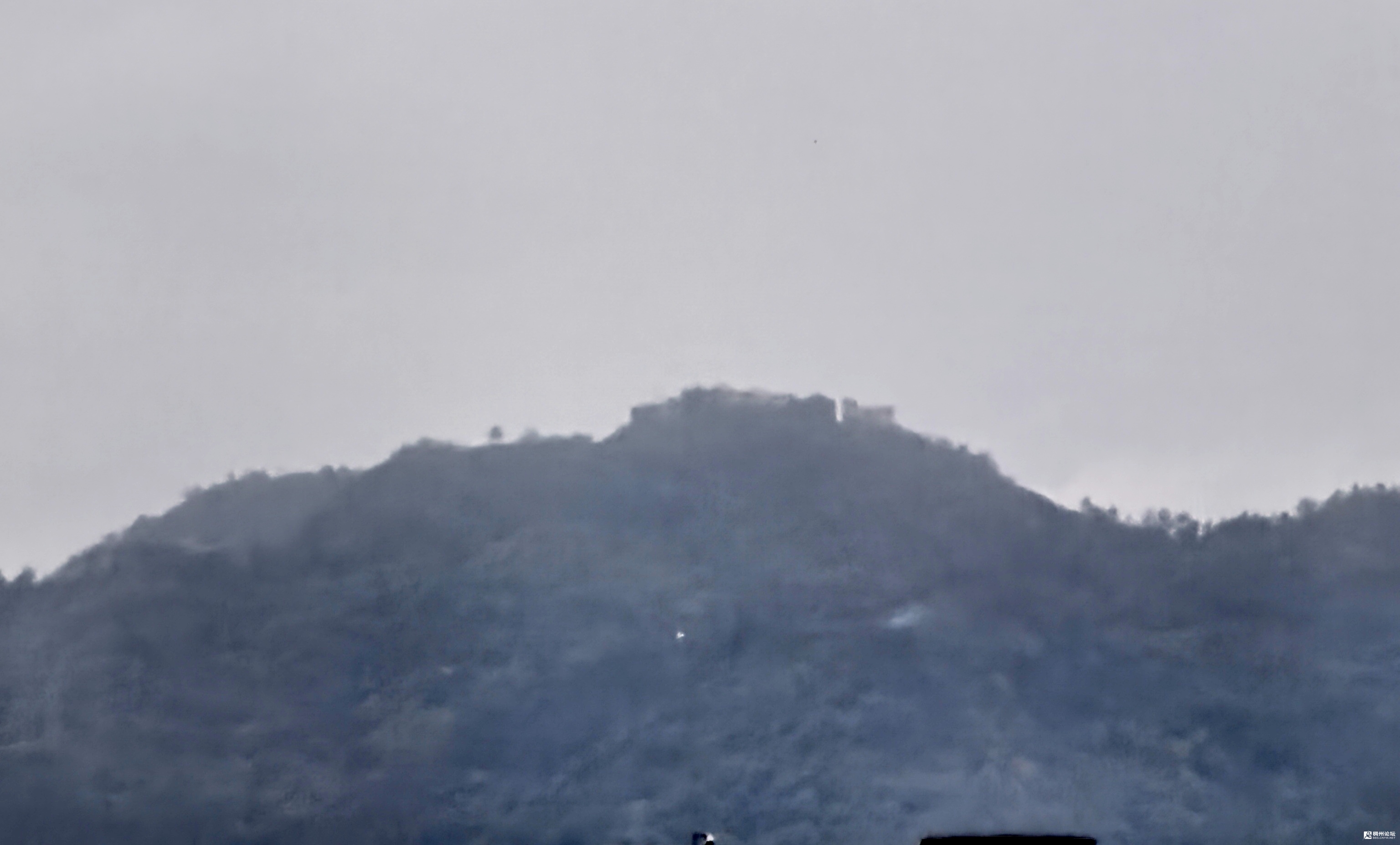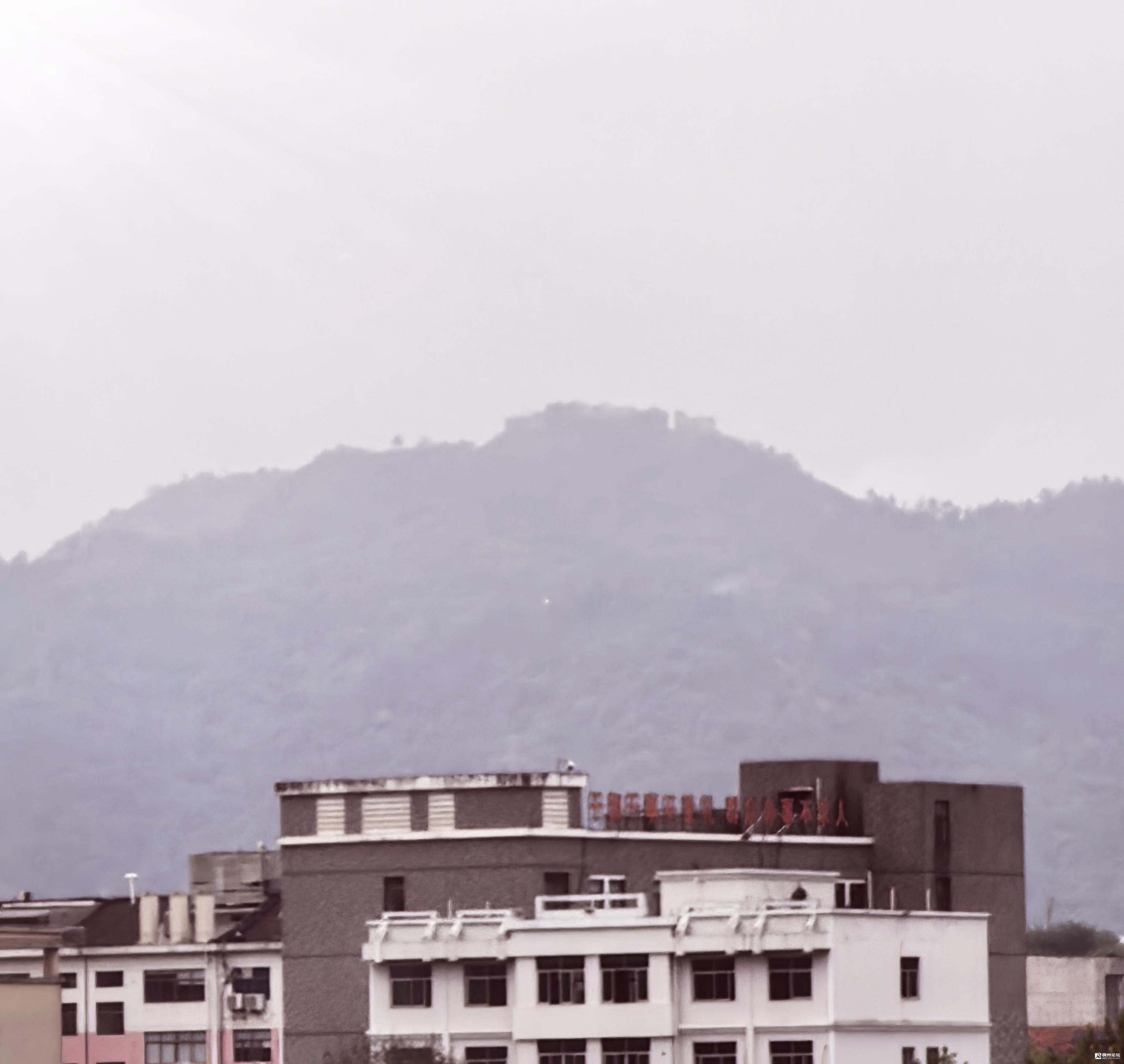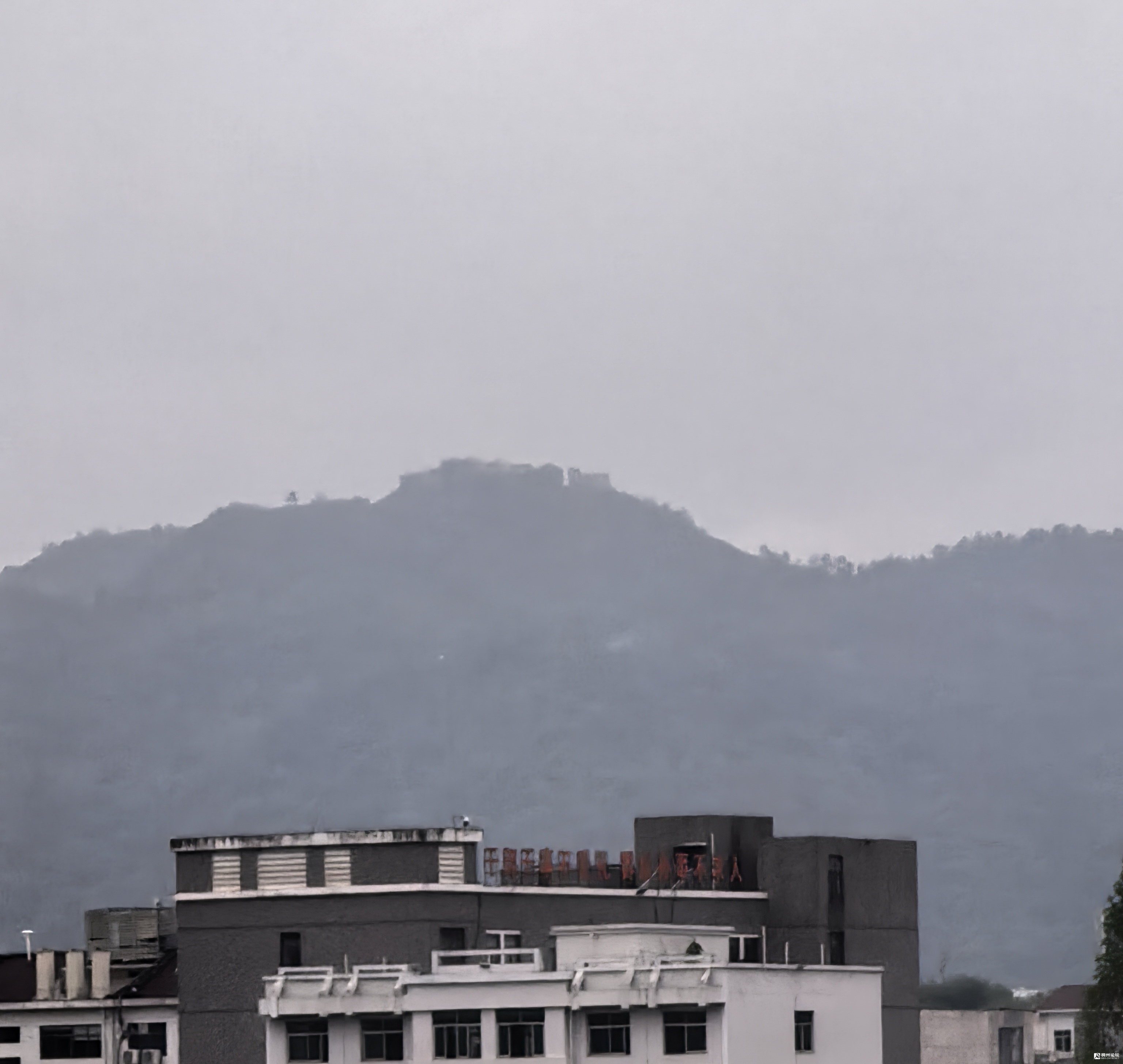 雨后 天阴沉沉的,站在远处的空旷地上,远眺云雾山顶上的德胜岩,似隐非隐,不禁感叹传道者们的智慧和坚定的毅力,竟有这样的前膽性和深远的思考性,选择占据俯视众生的居高地建这传播据点。