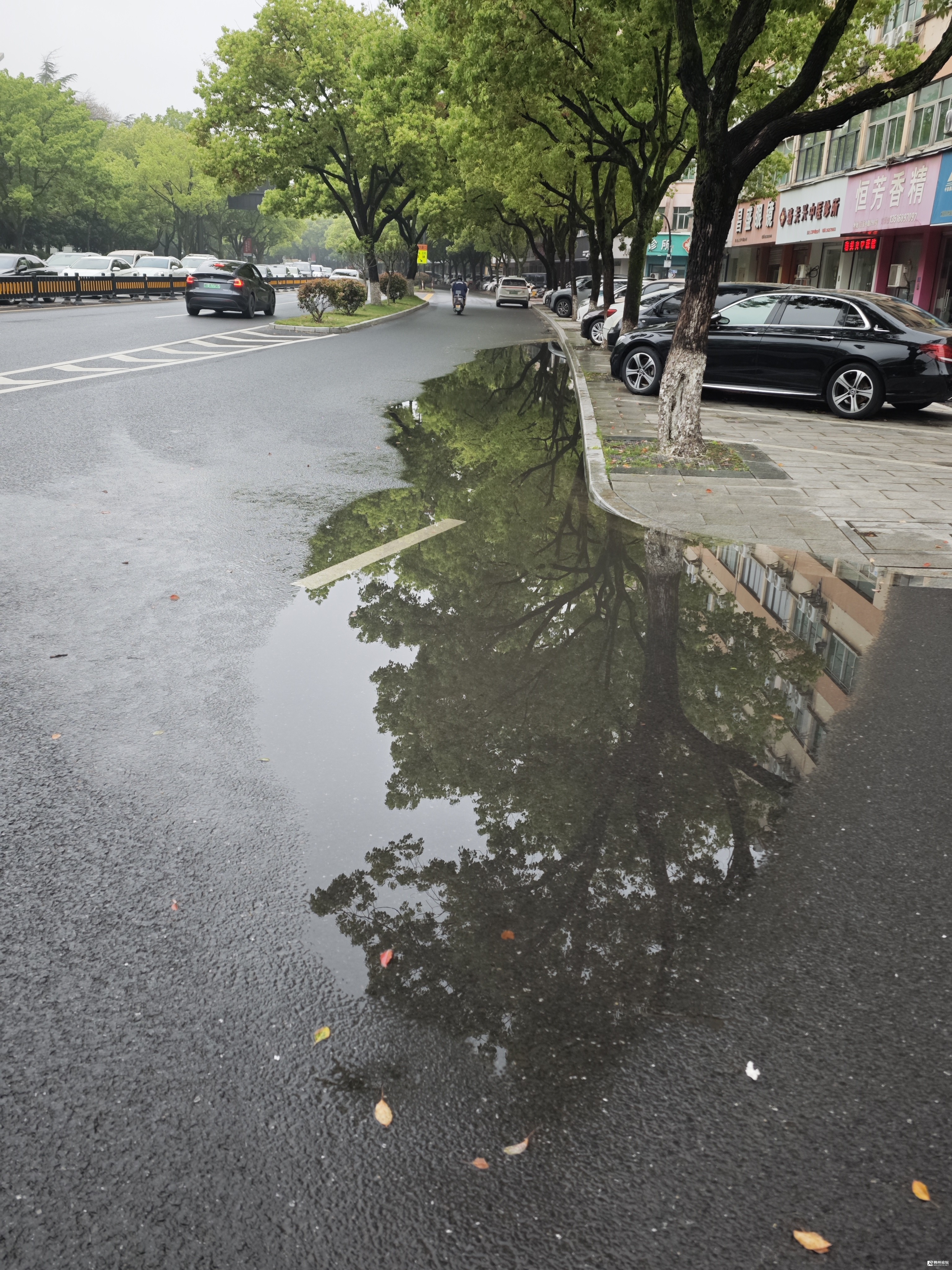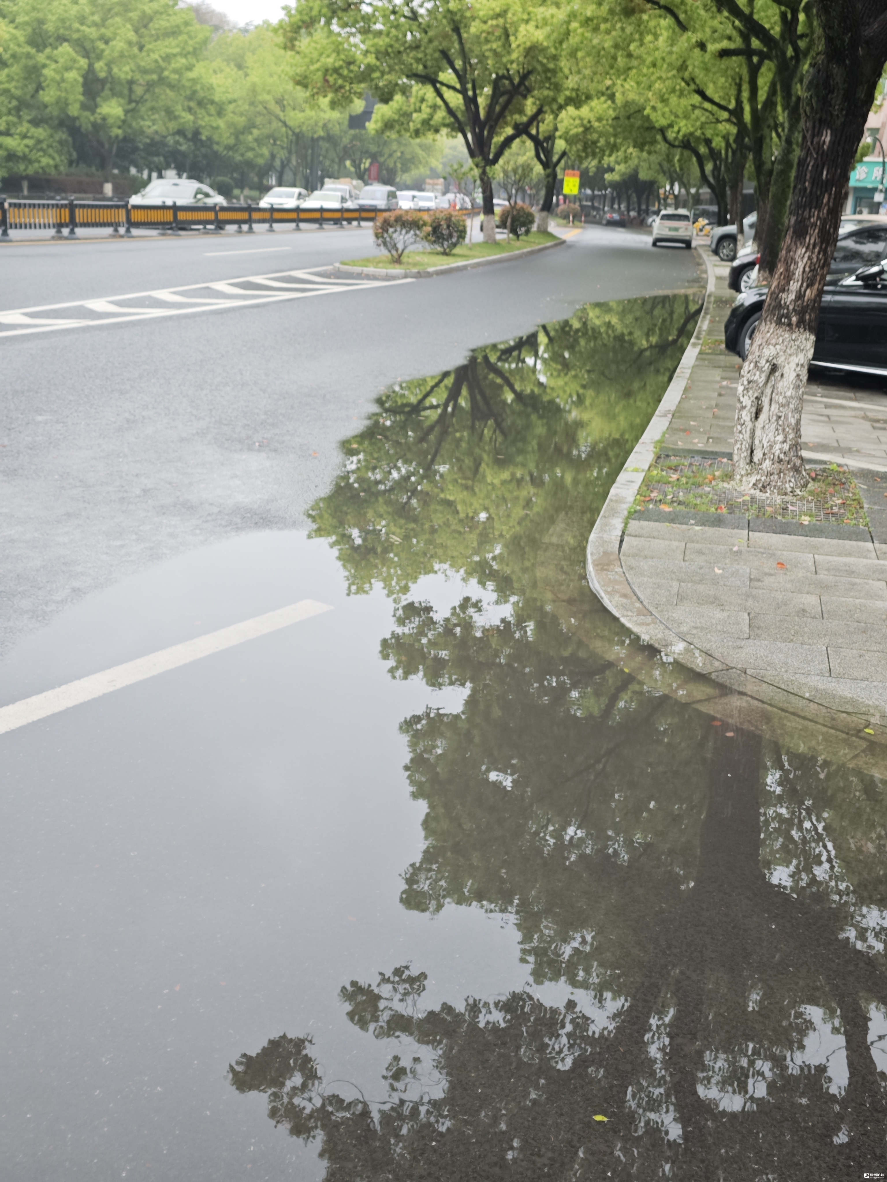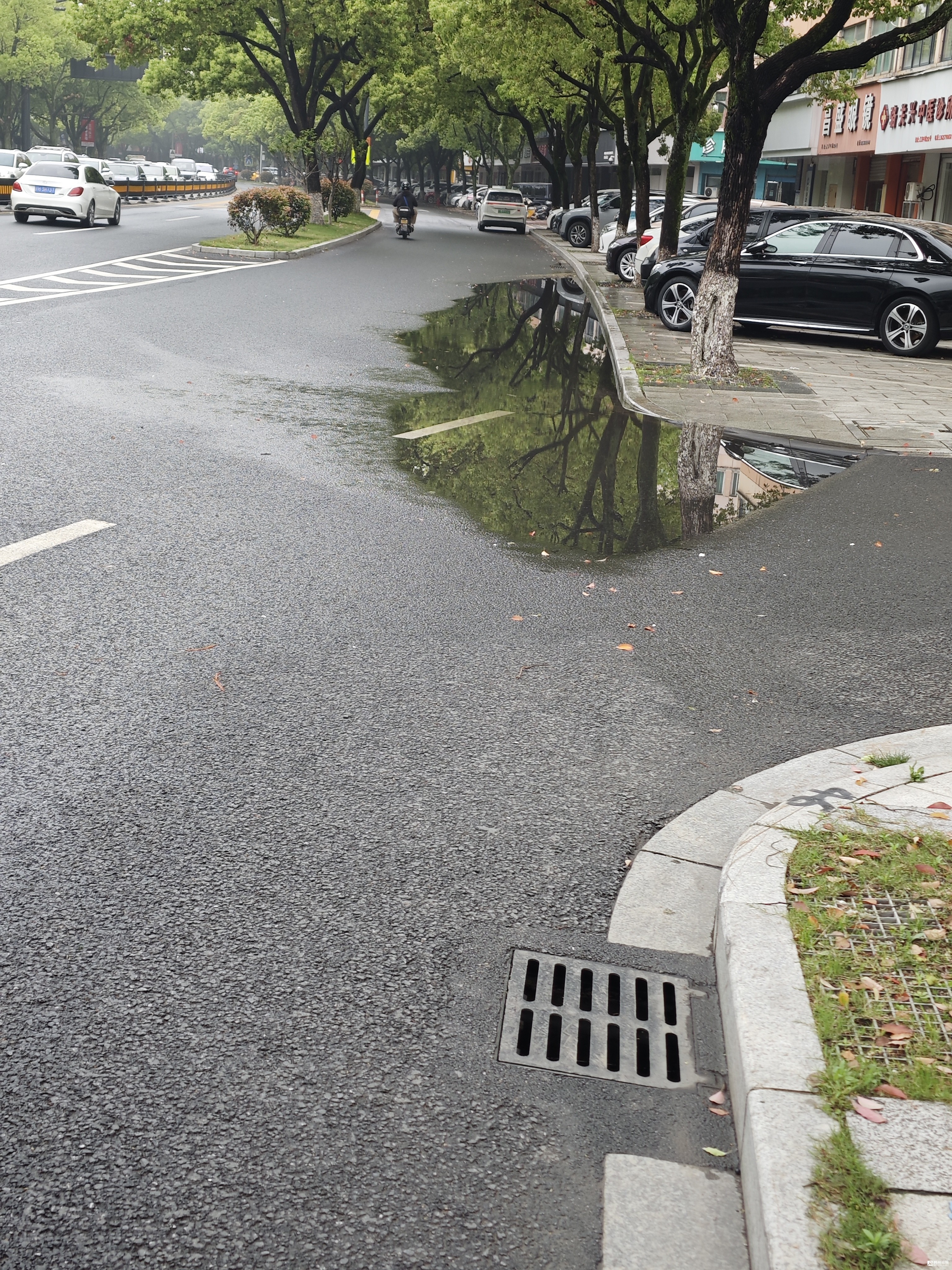 观察发现,这个积水点的两端,均有排水井。仔细一看,积水点区块也有一个雨水井,井盖淹没在积水中,没有丝毫排水迹象,明显是一个堵塞严严实实的窨井。