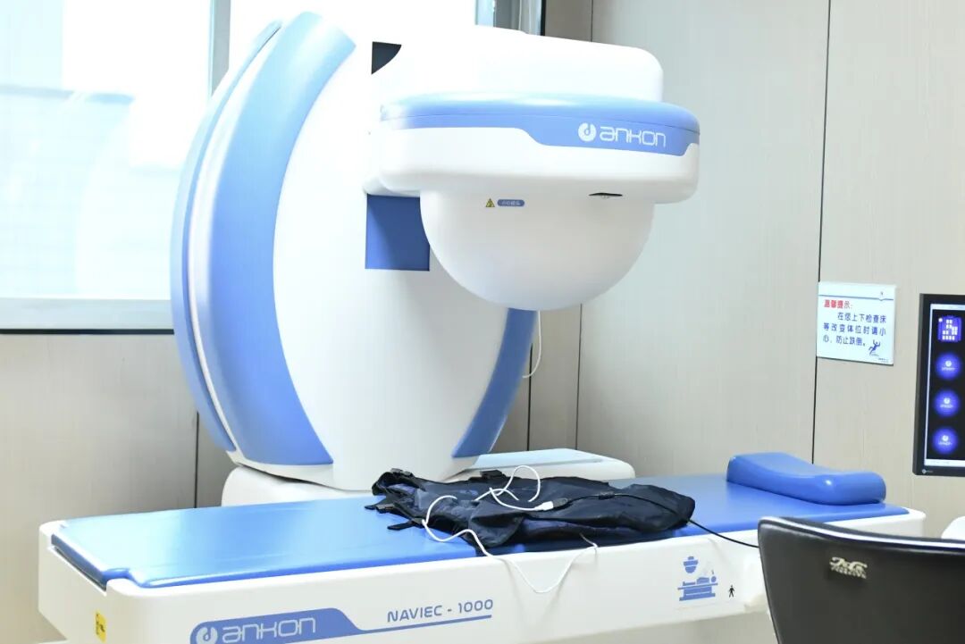 喝完小苏打水后,张先生穿上一件带有数据记录仪的检查服并躺在检查床上。这个检查服看起来就像一件贴身的背心,里面储存着接收图像的核心设备。