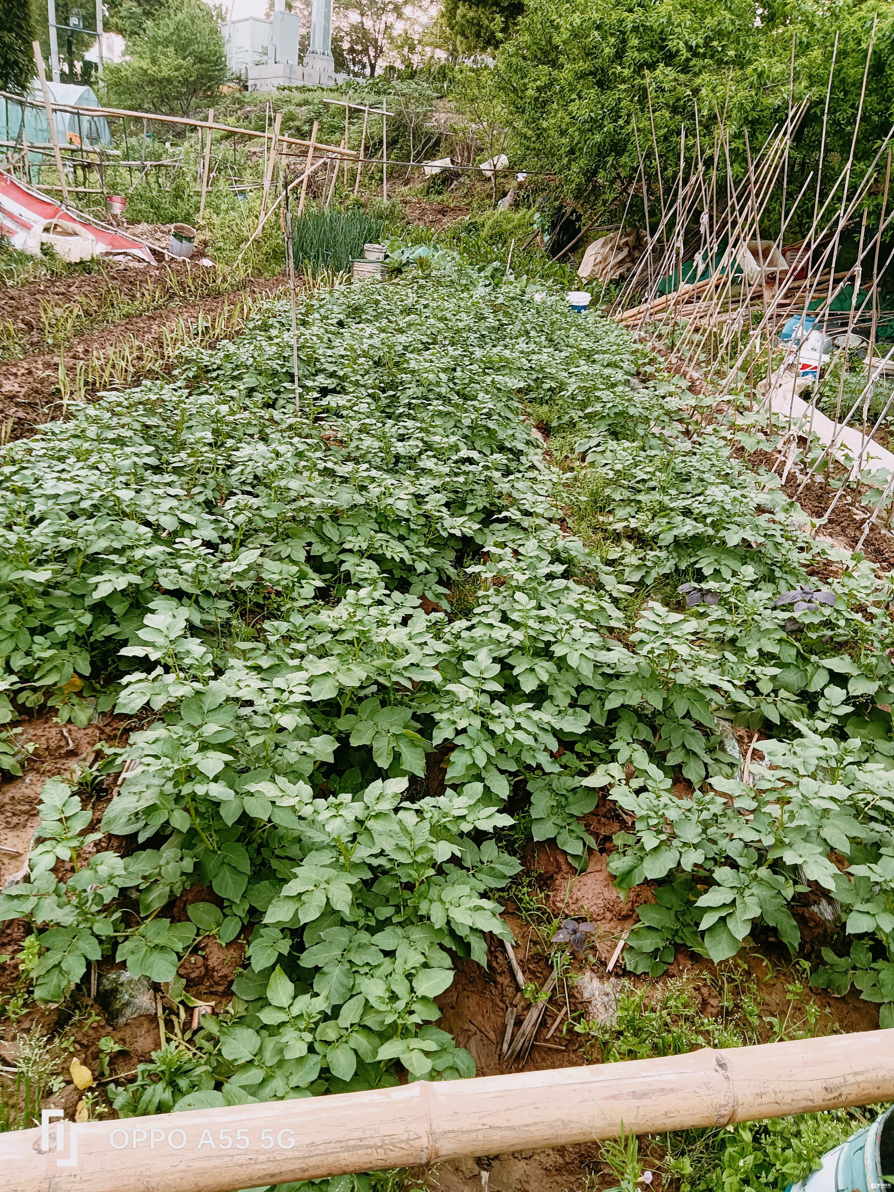 苦麻,长在春光里,生机勃勃。苦麻炒豆腐,是义乌麦饺,豆皮包最佳的馅料之一,苦麻性凉味苦,有益健康的好食材,清热解毒,助消化,调节血糖…… 另一块地是春马玲薯,长势喜人……