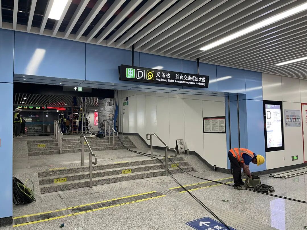 在轨道交通义乌高铁站站台,记者看到,车站内部标识清晰、设施齐全,工作人员正在进行开通前的各项准备工作,确保各项服务流程顺畅有序。该车站共有A、C、D三个出入口,每个出入口都设置了明显的指引标识,方便乘客快速辨别方向。