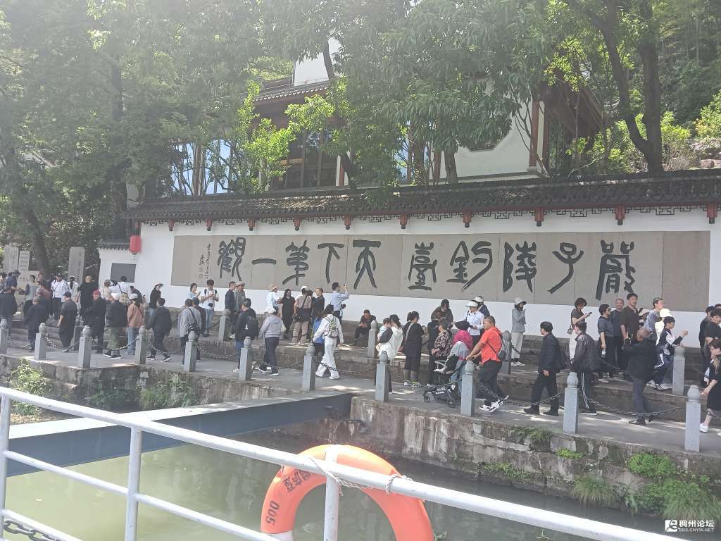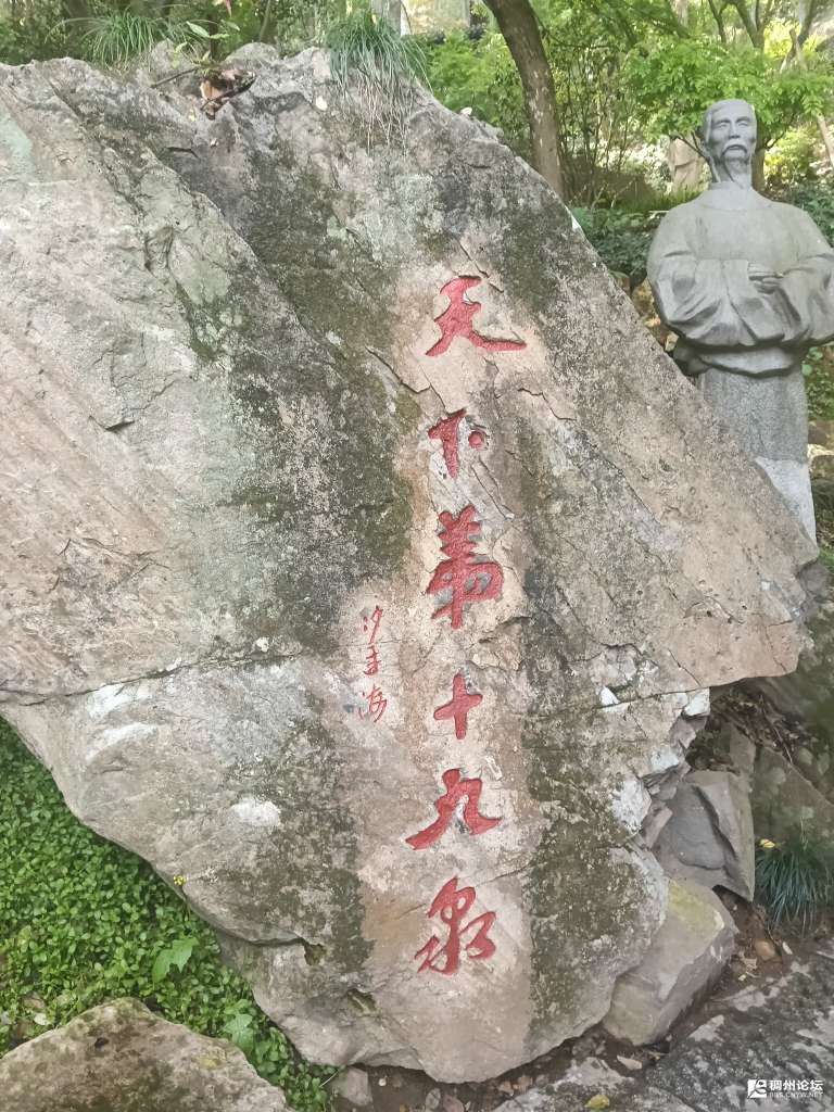 轮船行了近十里水路,拐个弯,缓缓靠了岸。出船上岸,脚下是青石板路,便到了严子陵钓台。还没仔细看钓台,先被路旁一道长廊吸引了过去。在书法碑铭前,有几位满腹经纶的文友,指着名家碑文、书法,滔滔不绝地讲述着自己的见解,我驻足观看,体会至深。