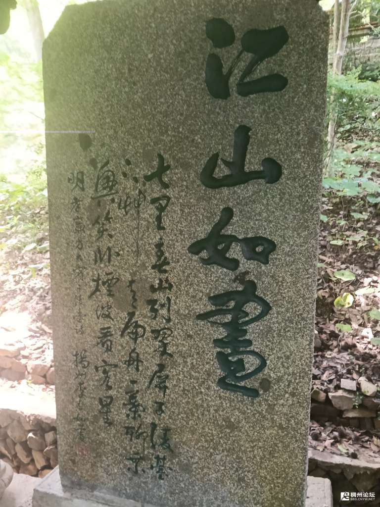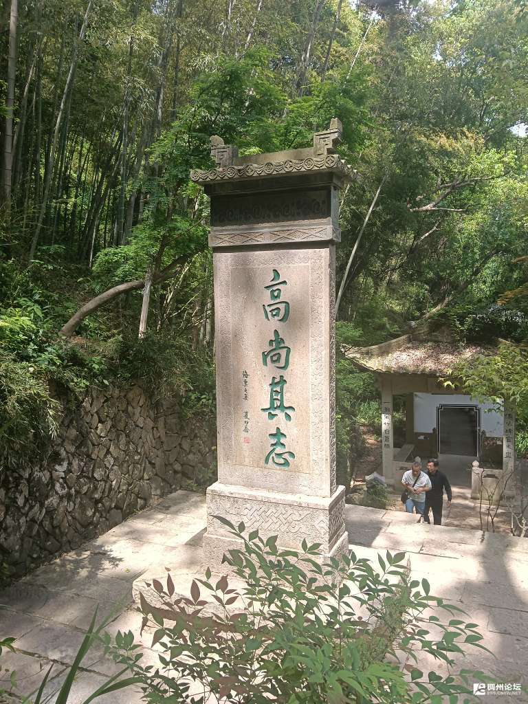 看完了,又该爬山了,上山是一条普普通通的石阶路,但有些陡,之字形弯弯绕绕的,走起来还真有点喘气。路靠山一边都是大树,遮天蔽日的,不过,既然到了此地,不爬到半山腰的望江亭,不亲自看看那高崖钓台,不是又白来一趟吗?