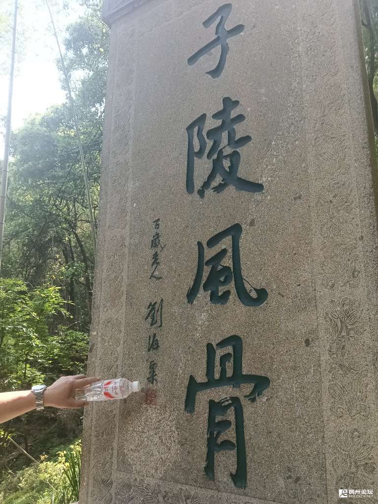 走出严子陵钓台石碑书法长廊,转角处,竟偶遇一方刘海粟画家的墨迹石碑。碑分两面,一面书 “子陵风骨”,一面题 “高尚其志”,笔力遒劲,意蕴深远,像是给这条满是诗文的走廊,结结实实地收了个尾。
