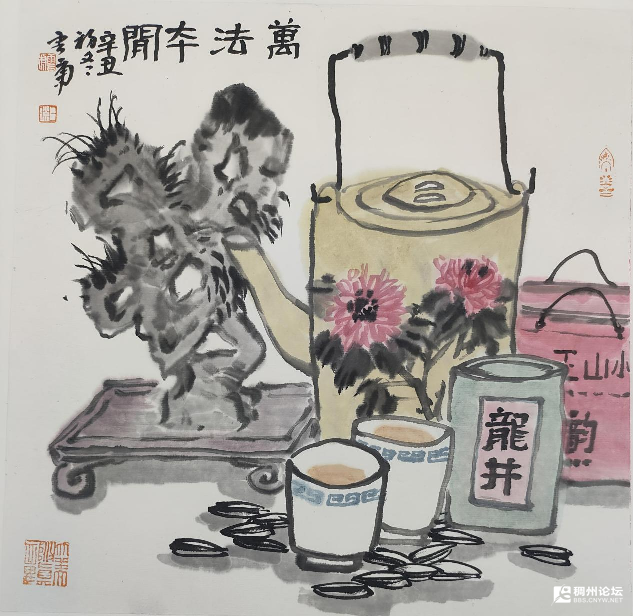 “人间烟火,最抚凡人心。”本次展览以“人间烟火”为主题,画作意境清雅、笔墨温润,于方寸之间蕴藏生活诗意。无论是老街一隅、乡间小景,还是寻常器物、市井人物,均以细腻笔触勾勒出生活的温度与诗意。这一主题源于金云虎近年来的创作感悟——真正的艺术不在远方,就在寻常巷陌的烟火气里。正如他在创作手记中所言:“我画的就是我走过的老街、见过的乡亲、喝过的茶水,这些最平常的东西,恰恰是最有生命力的。”