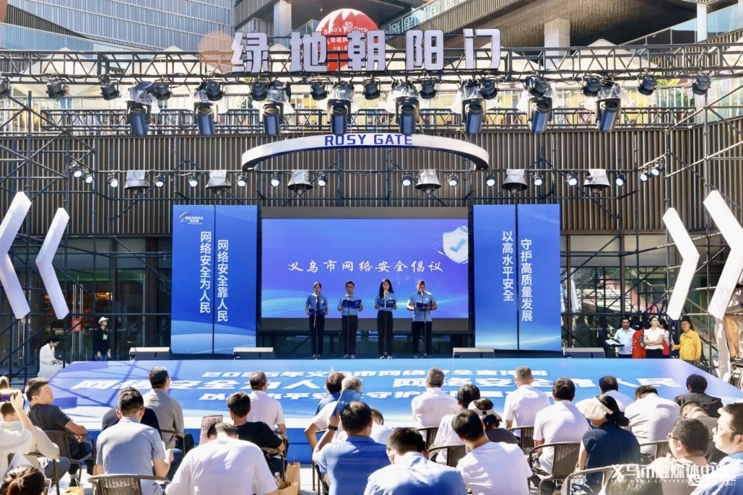 9月16日上午,2025年义乌市网络安全宣传周启动仪式在稠城街道绿地朝阳门商城下沉广场举行。义乌市委常委、宣传部部长朱有清参加活动。