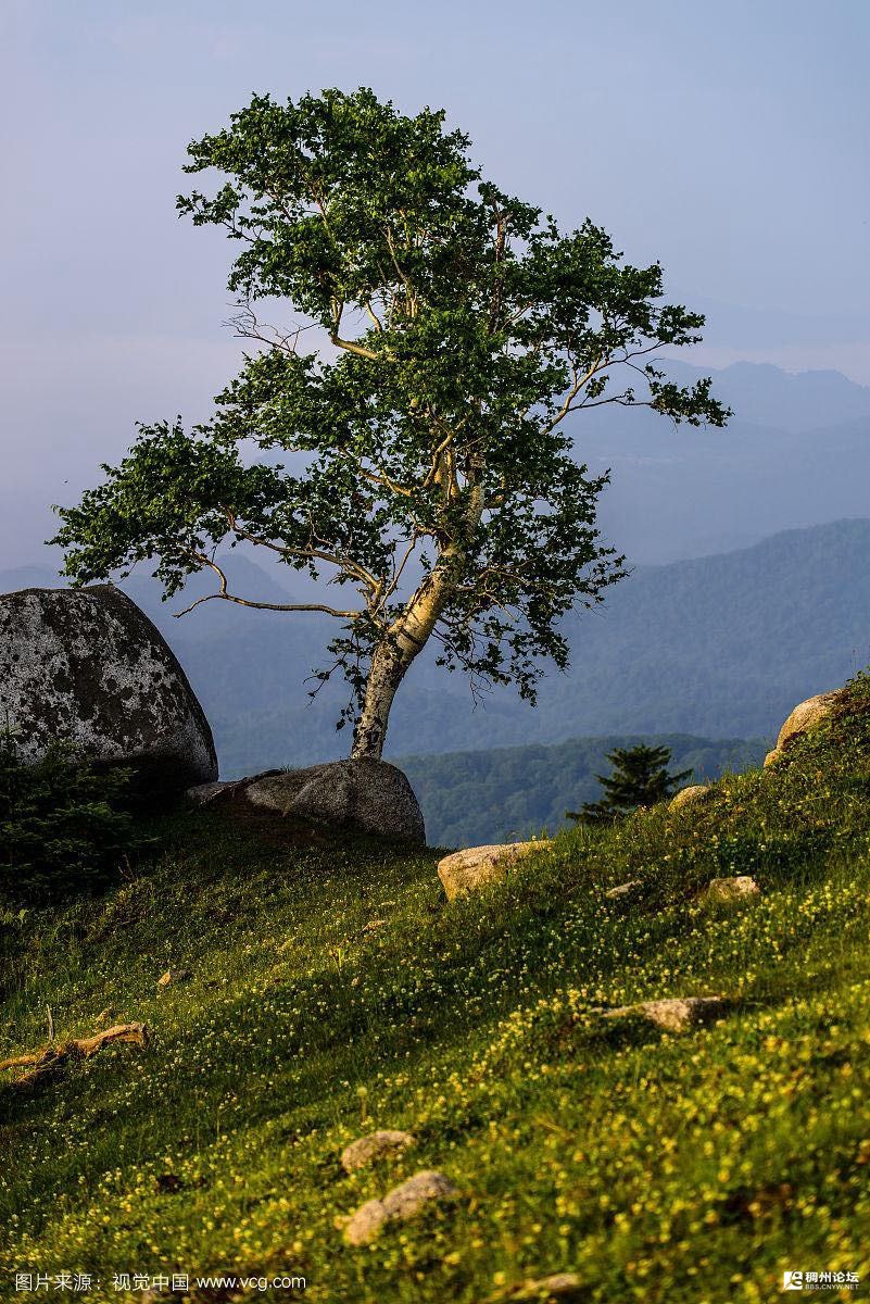 清晨,明媚的阳光在状如蘑菇的树冠上跳舞,微风掠过树梢,叶片闪烁着无数的碎金,从缝隙漏下几缕阳光,零零散散的斜照在树中心一个伤痕斑斑的一个圆截面上。树桩上沉暗的年轮记录着树的完整历史,从这里可以读到它奋斗、伤痛、寂寞和繁荣的历程。