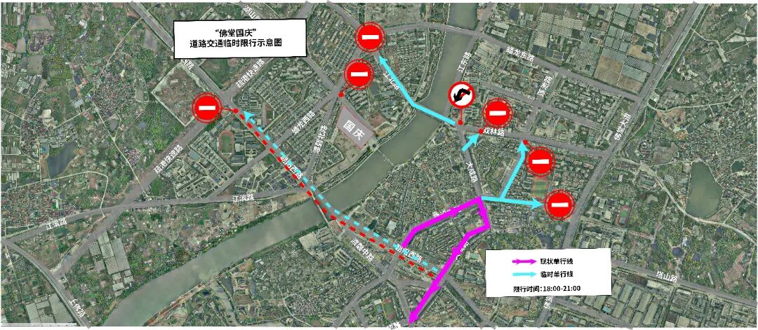 活动期间,锦衣路路口-Y型路口路段、锦衣南路(江滨路-国贸大道)路段、国贸大道丁店村和上山村下口禁止车辆通行。建议游客提前走邢宅出口、义甬大道出口下国贸绕行或行驶至国贸大道终点稠大线。 时间:10月6日(18:00-21:00) 双林路往江北方向实施单向通行,云黄路往双林路方向、莲池路往双林路方向、建设路往佛堂大道方向、朝阳路隧道往古镇方向实施单向通行。 国庆期间,自驾游客请积极配合、服从交警指挥和疏导,尽量不驾车进入佛堂古镇核心区域,就近将车辆停放在各临时停车区域,步行或换乘公共交通到各活动点位游玩,避免因交通拥堵影响游玩体验。 无人机表演活动期间,佛堂镇区客流、车流骤增,为避免造成大面积交通拥堵,请大家提前规划好出行路线,尽量选择拼车、公共交通或步行等方式前往。 来佛堂游玩的游客,可以选择通过最近开通的江赤公路。 请广大居民和游客朋友们自觉遵守交通法规和现场指挥引导,文明观演,有序出行。途经佛堂的车辆可以选择绕道而行,避免因堵车耽误您的宝贵时间。 如镇域出现交通严重饱和等紧急情况,交警将根据实际情况,启动应急预案,对部分路段进行临时限行措施,请您服从现场交警指挥引导。给您带来的不便,敬请谅解!
