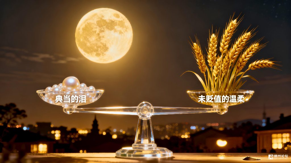铜绿爬满硬币脊背,缠着褪色朱砂印,坠进当铺暗巷。恩情对折,痛楚叠账。唯有月光仍按原价,用永恒的光,称量人间典当的泪。